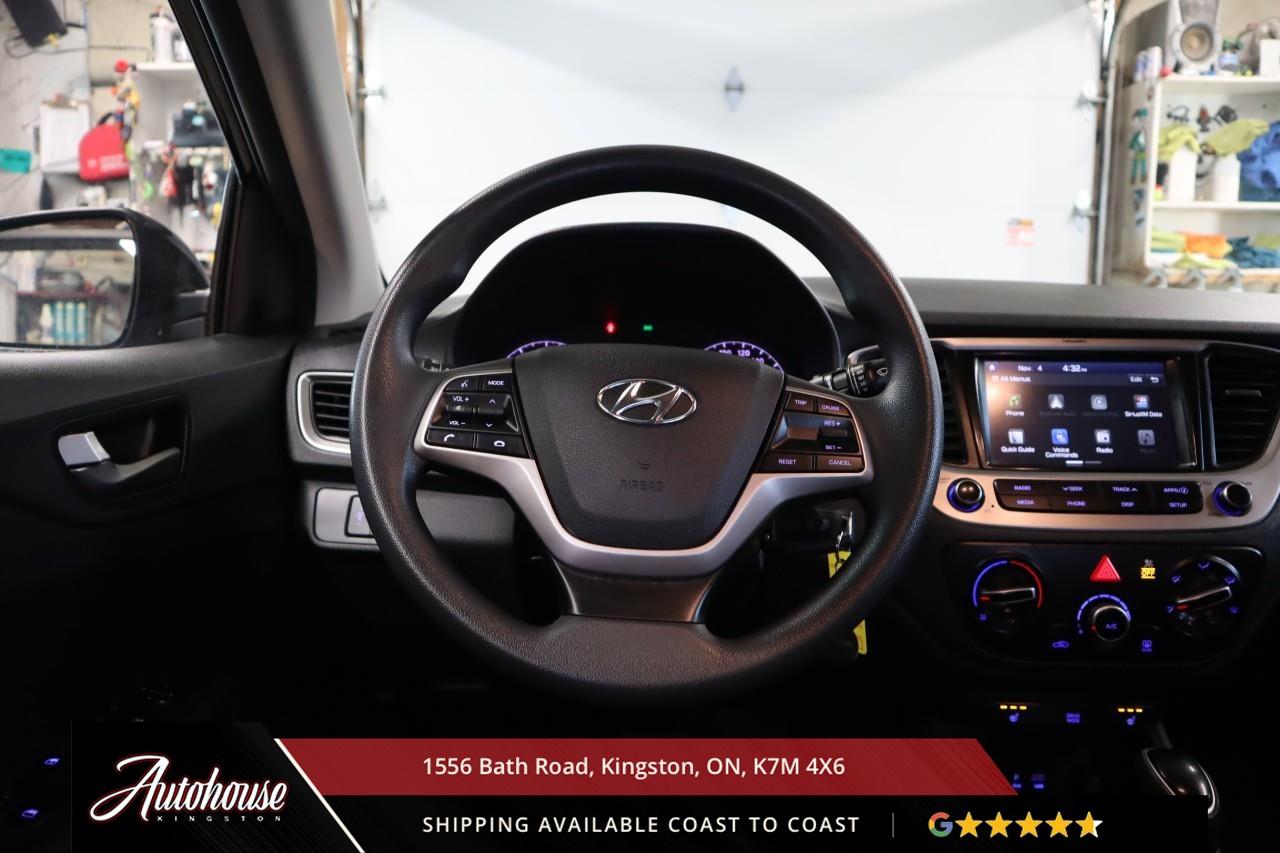 The 2019 Hyundai Accent Preferred is equipped with a 1.6 L 4-cylinder Gasoline Direct Injection engine getting ~ 8.2 L/100 km city and ~ 6.2 L/100 km highway. power windows, power door locks, heated front seats, Infotainment system with Apple CarPlay® and Android Auto compatibility, Bluetooth hands-free phone and audio streaming, USB/Auxiliary inputs, Rear-view (backup) camera, ABS brakes, traction control, electronic stability control, and so much more!