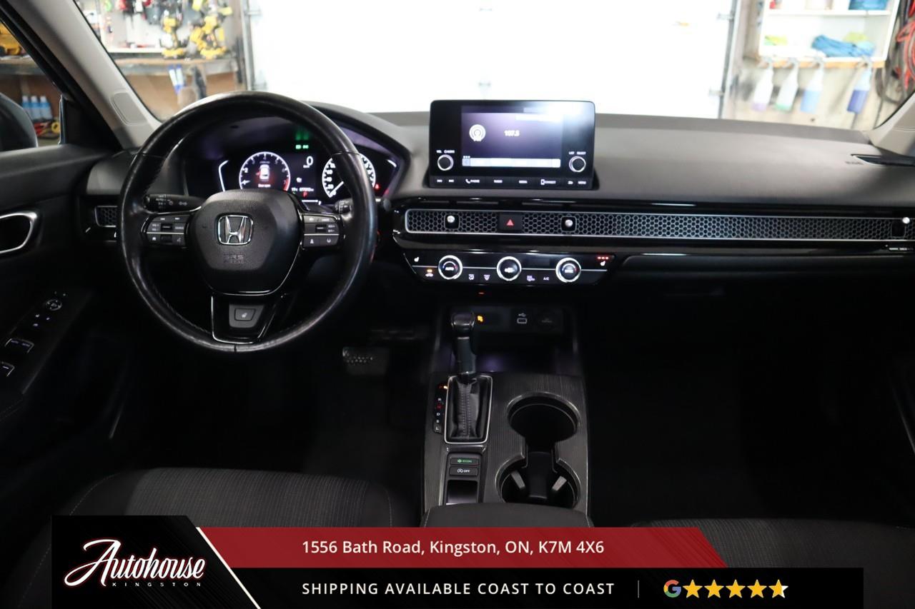 The 2022 Honda Civic EX is packed with a 2.0 L naturally-aspirated i-VTEC® 4-cylinder engine, Continuously Variable Transmission, Estimated Canadian fuel economy: about 7.7 L/100 km (city) / 6.0 L/100 km (highway). One-touch power sunroof/moonroof, Heated front seats, Large touchscreen infotainment display with Apple CarPlay® & Android Auto integration, Multi-angle rearview camera, Standard Honda Sensing® suite (in Canadian spec) including: Forward Collision Warning / Automatic Emergency Braking, Lane Departure Warning / Lane Keep Assist, Road Departure Mitigation, a balance of Honda Manufacturer warranty along with a clean CARFAX.