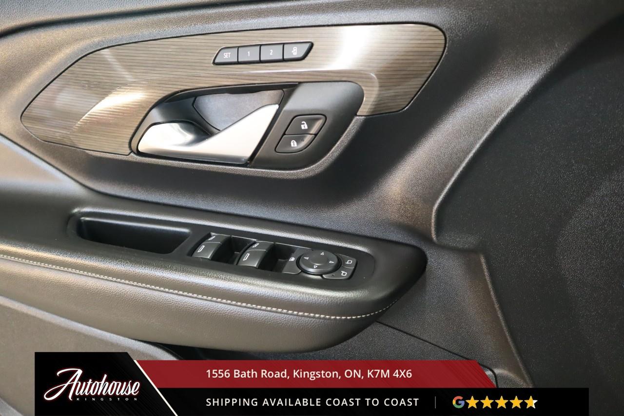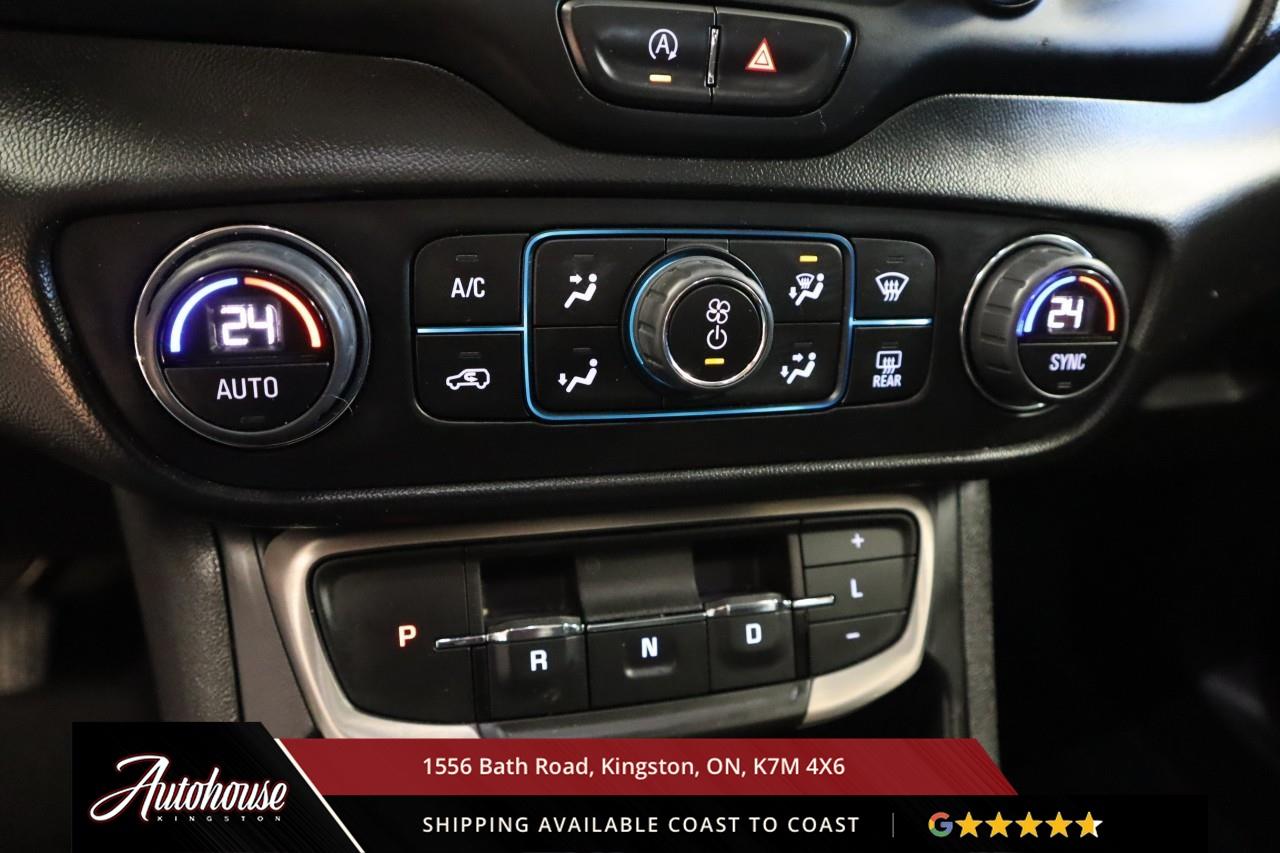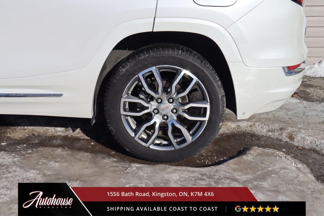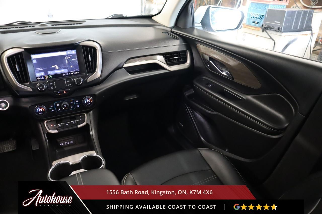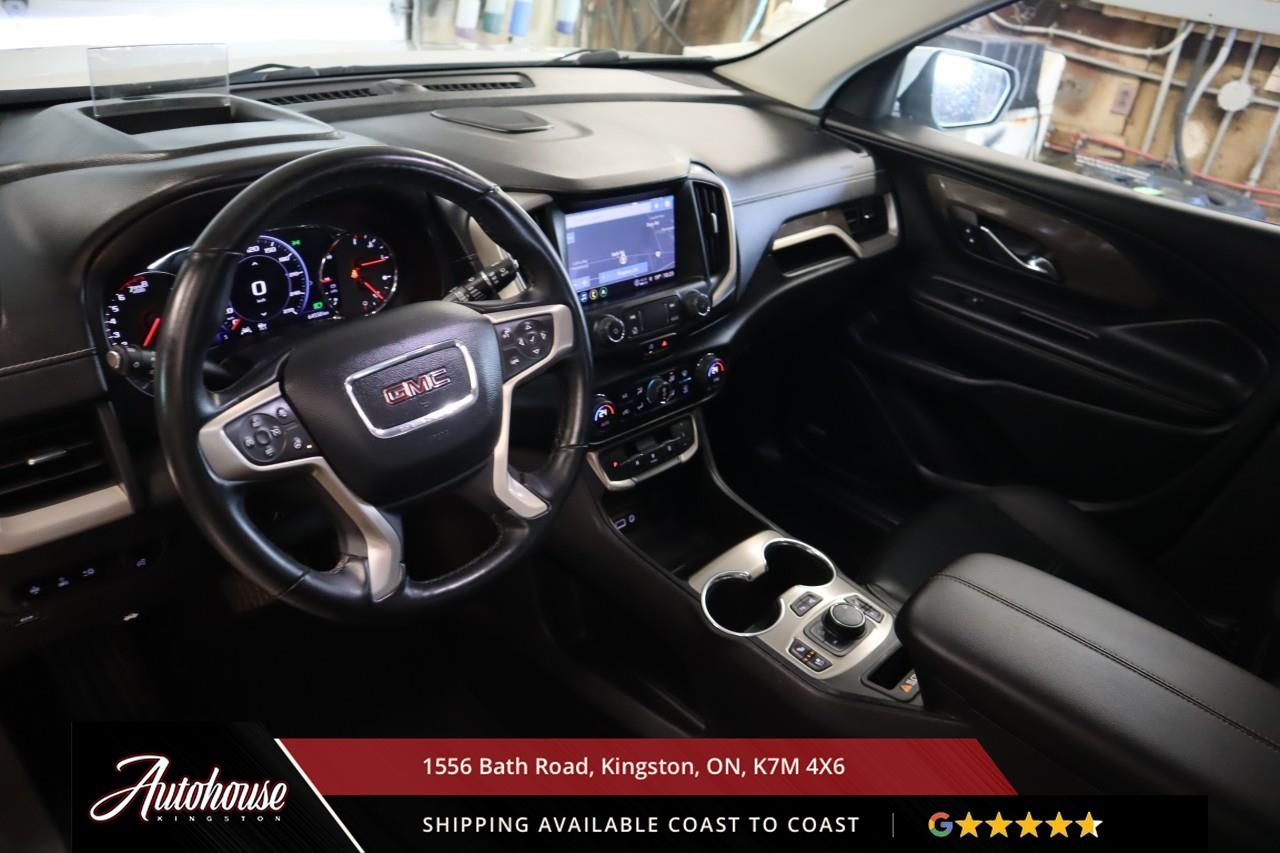This 2023 GMC Terrain Denali AWD is powered by a turbocharged 1.5 L 4-cylinder engine paired with a 9-speed automatic transmission and full All-Wheel Drive, offering with an estimated 9.9 L/100 km city and 8.3 L/100 km highway fuel economy. Heated power-adjustable mirrors with integrated turn signals, panoramic sunroof, and a hands-free power liftgate. The Denali interior offers leather-appointed seating with heated and ventilated front seats, heated rear outboard seats, an 8-way power drivers seat with memory, a heated leather-wrapped steering wheel, and dual-zone automatic climate control with rear vents. Infotainment system with touchscreen display, Apple CarPlay and Android Auto, Bluetooth hands-free phone and navigation, premium Bose audio system, wireless charging, and steering-wheel mounted controls. Safety and driver-assist equipment include a rear-view camera, HD Surround Vision, Blind Zone Alert with Rear Cross Traffic Braking, Forward Collision Alert, Lane Keep Assist with Lane Departure Warning, Adaptive Cruise Control, traction and stability control, and a heads-up display.