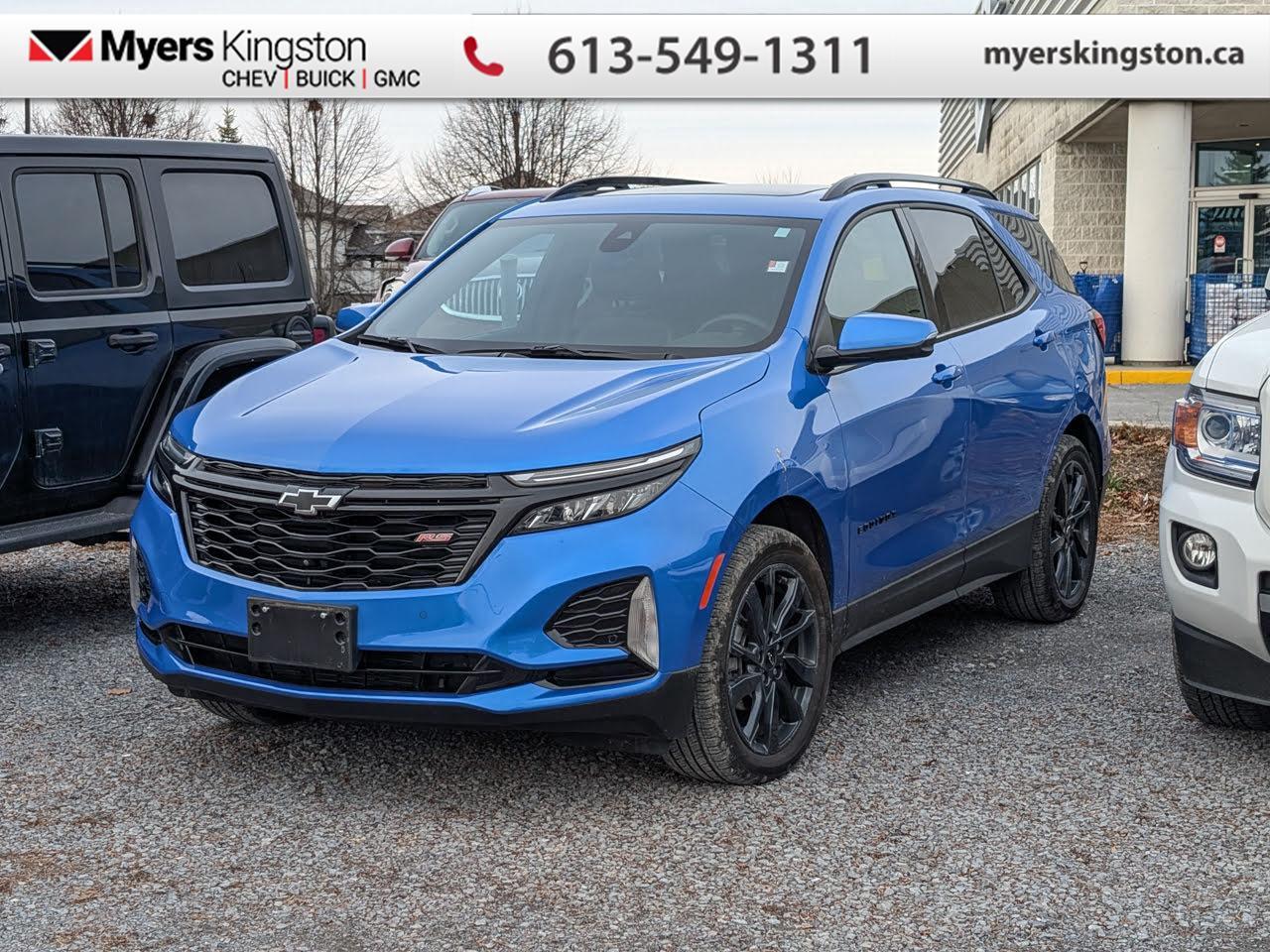 Low Mileage, Power Liftgate, Blind Spot Detection, Climate Control, Heated Seats, Apple CarPlay! With plenty of cargo and passenger space, plus all the cool features you expect of a modern family vehicle, this 2024 Chevrolet Equinox is an easy choice for your adventure vehicle. This 2024 Chevrolet Equinox is for sale today in Kingston. This extremely competent Chevy Equinox is a rewarding SUV that doubles down on versatility, practicality and all-round reliability. The dazzling exterior styling is sure to turn heads, while the well-equipped interior is put together with great quality, for a relaxing ride every time. This 2024 Equinox is sure to be loved by the whole family. This low mileage SUV has just 18,653 km. It's Riptide Metallic in colour and is completely accident free based on the CARFAX Report. It has an Automatic transmission and is powered by a 175HP 1.5L 4 Cylinder Engine. Our Equinox's trim level is RS. The RS trim of the Equinox adds in blacked out exterior styling elements, with a power liftgate for rear cargo access, blind spot detection and dual-zone climate control, and is decked with great standard features such as front heated seats with lumbar support, remote engine start, air conditioning, remote keyless entry, and a 7-inch infotainment touchscreen with Apple CarPlay and Android Auto, along with active noise cancellation. Safety on the road is assured with automatic emergency braking, forward collision alert, lane keep assist with lane departure warning, front and rear park assist, and front pedestrian braking. This vehicle has been upgraded with the following features: Power Liftgate, Blind Spot Detection, Climate Control, Heated Seats, Apple CarPlay, Android Auto, Remote Start. To apply right now for financing use this link: https://www.taylorautomall.com/finance/apply-for-financing/ Buy this vehicle now for the lowest bi-weekly payment of $236.24 with $0 down for 96 months @ 8.99% APR O.A.C. ( Plus applicable taxes - Plus applicable fees ). See dealer for details. For more information, please call any of our knowledgeable used vehicle staff at (613) 549-1311! Come by and check out our fleet of 40+ used cars and trucks and 180+ new cars and trucks for sale in Kingston. o~o