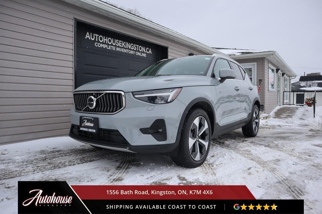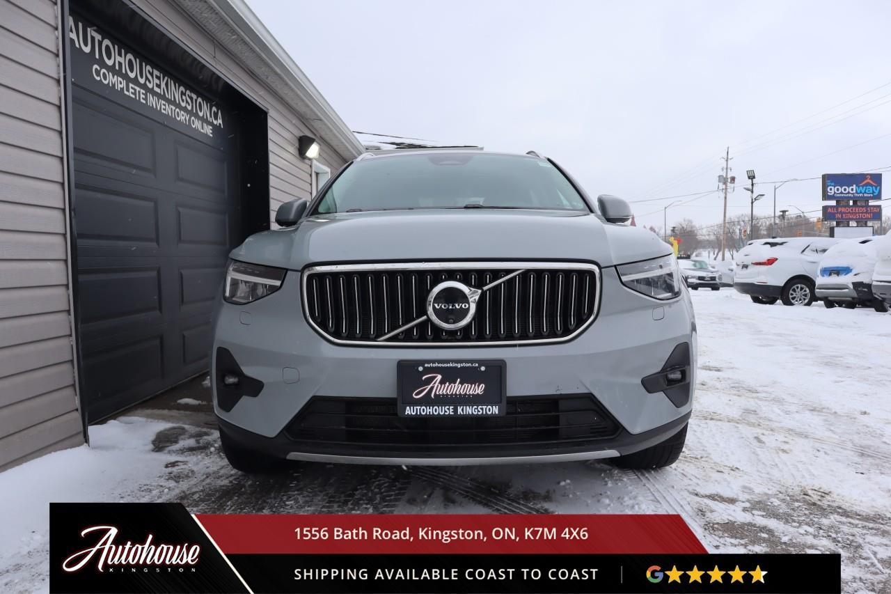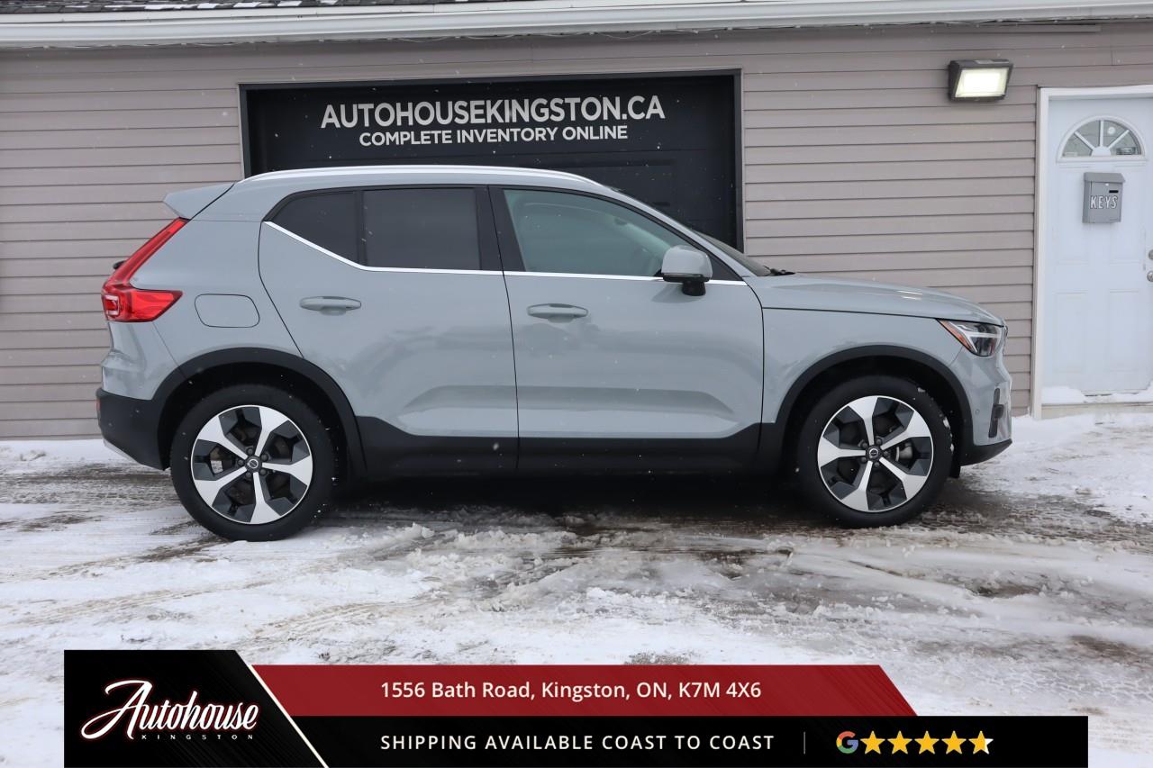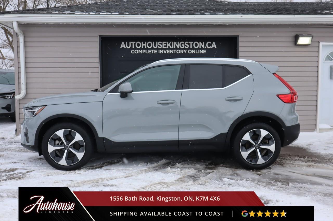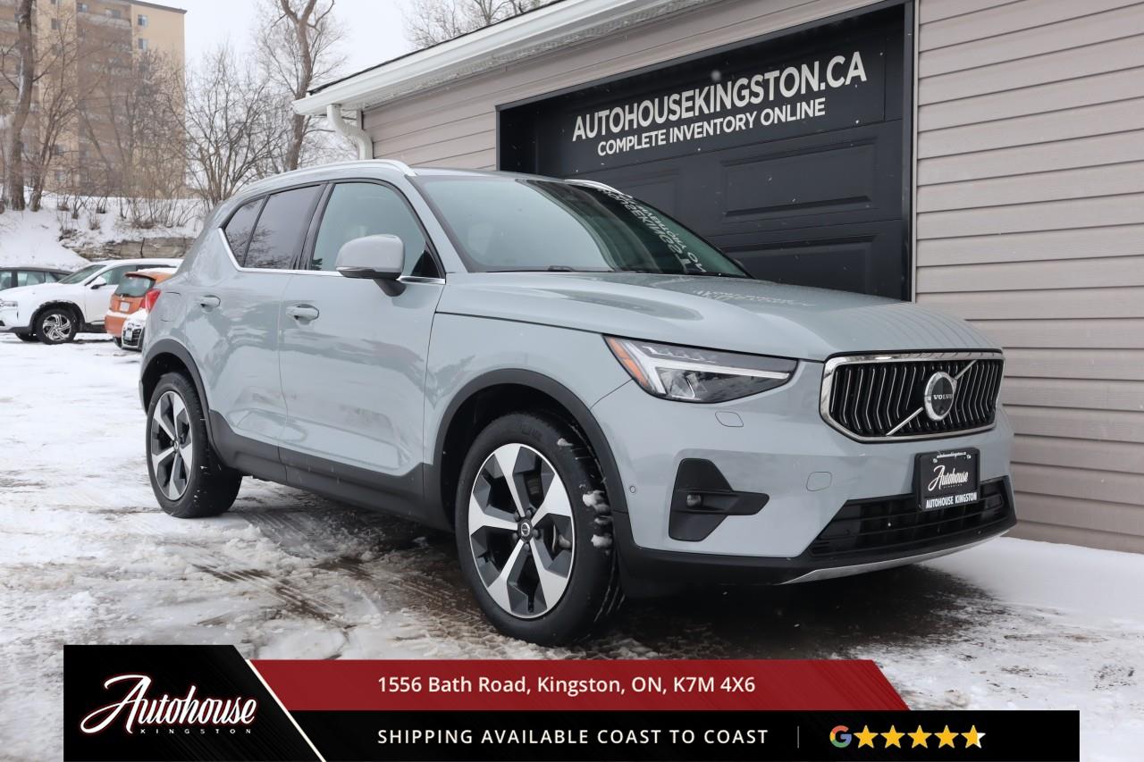 The 2024 Volvo XC40 B5 Plus Bright Package Volvo's advanced B5 mild hybrid powertrain with a 2.0-liter turbocharged inline-4 producing 247 horsepower and an estimated 9.9 L/100km city and 7.7 L/100km highway fuel efficiency through a smooth 8-speed automatic transmission with intelligent all-wheel drive. The exclusive Bright Package distinguishes its athletic stance with glossy black grille, mirror caps, roof rails, premium leather-faced seating includes power-adjustable front positions with driver memory, panoramic moonroof, dual-zone electronic climate control with advanced air purification, and a 9-inch portrait-oriented Sensus touchscreen featuring Google built-in, Apple CarPlay, Android Auto, and a fully digital 12.3-inch driver display. Volvo's IntelliSafe suite includes City Safety collision avoidance with pedestrian and cyclist detection, Pilot Assist with adaptive cruise control, Blind Spot Information System with cross-traffic alert and steering assist, 360-degree surround view camera, and run-off road mitigation. Additional luxury amenities include hands-free power tailgate with gesture control, wireless smartphone charging, heated front seats and steering wheel, keyless entry with proximity sensing, and a premium audio system. This XC40 comes with a balance of Volvo warranty along with a clean CARFAX