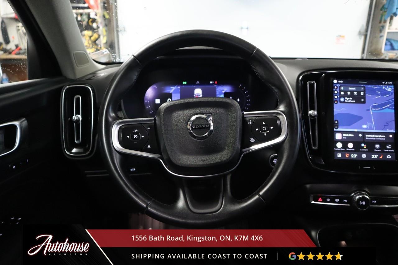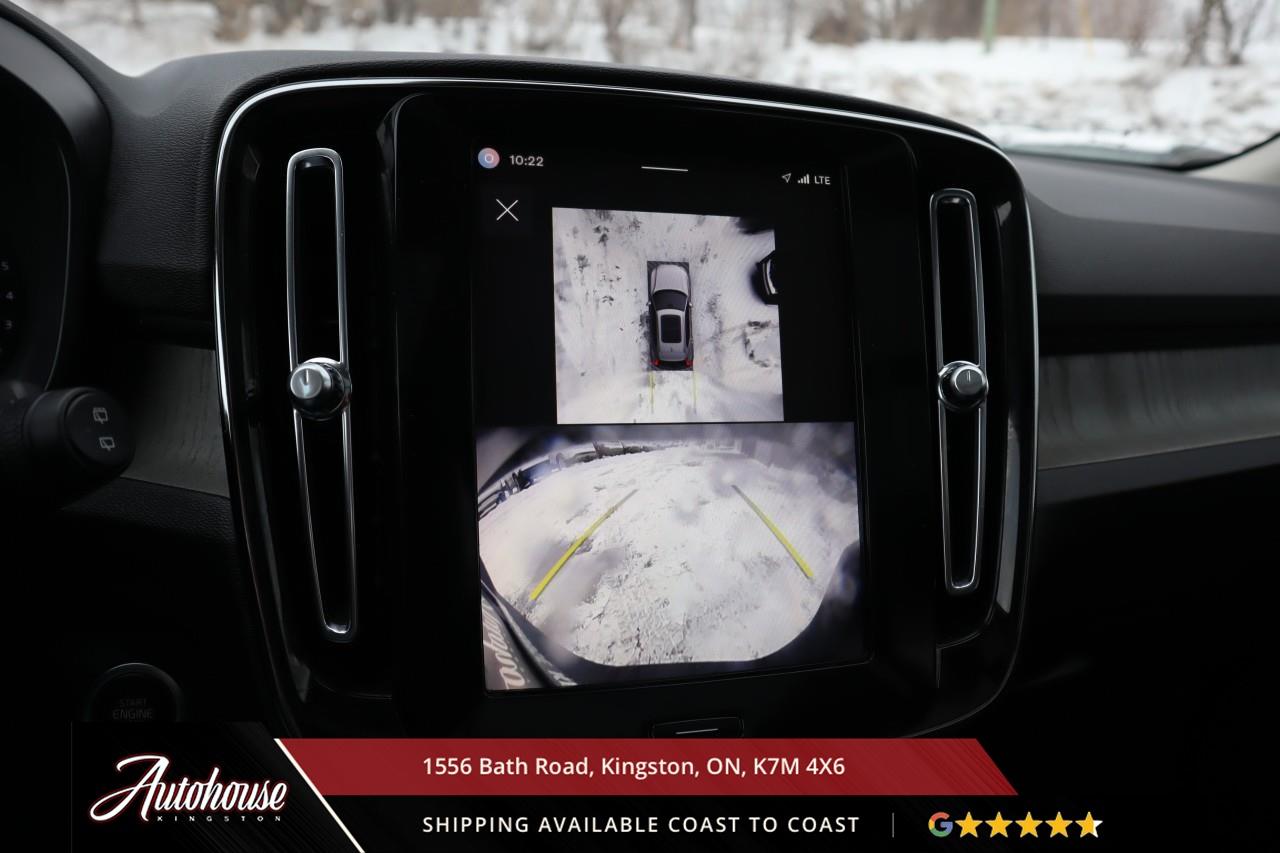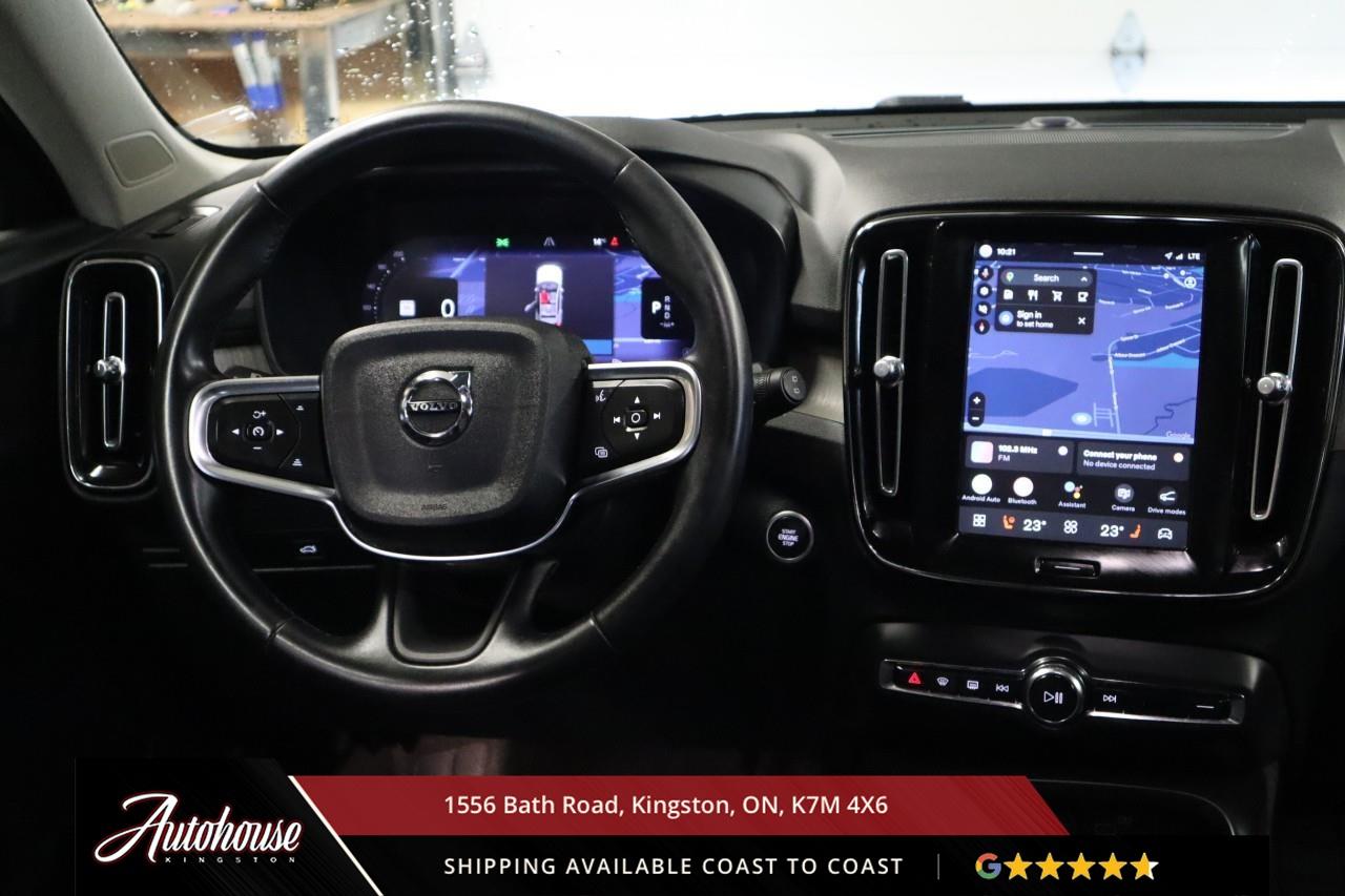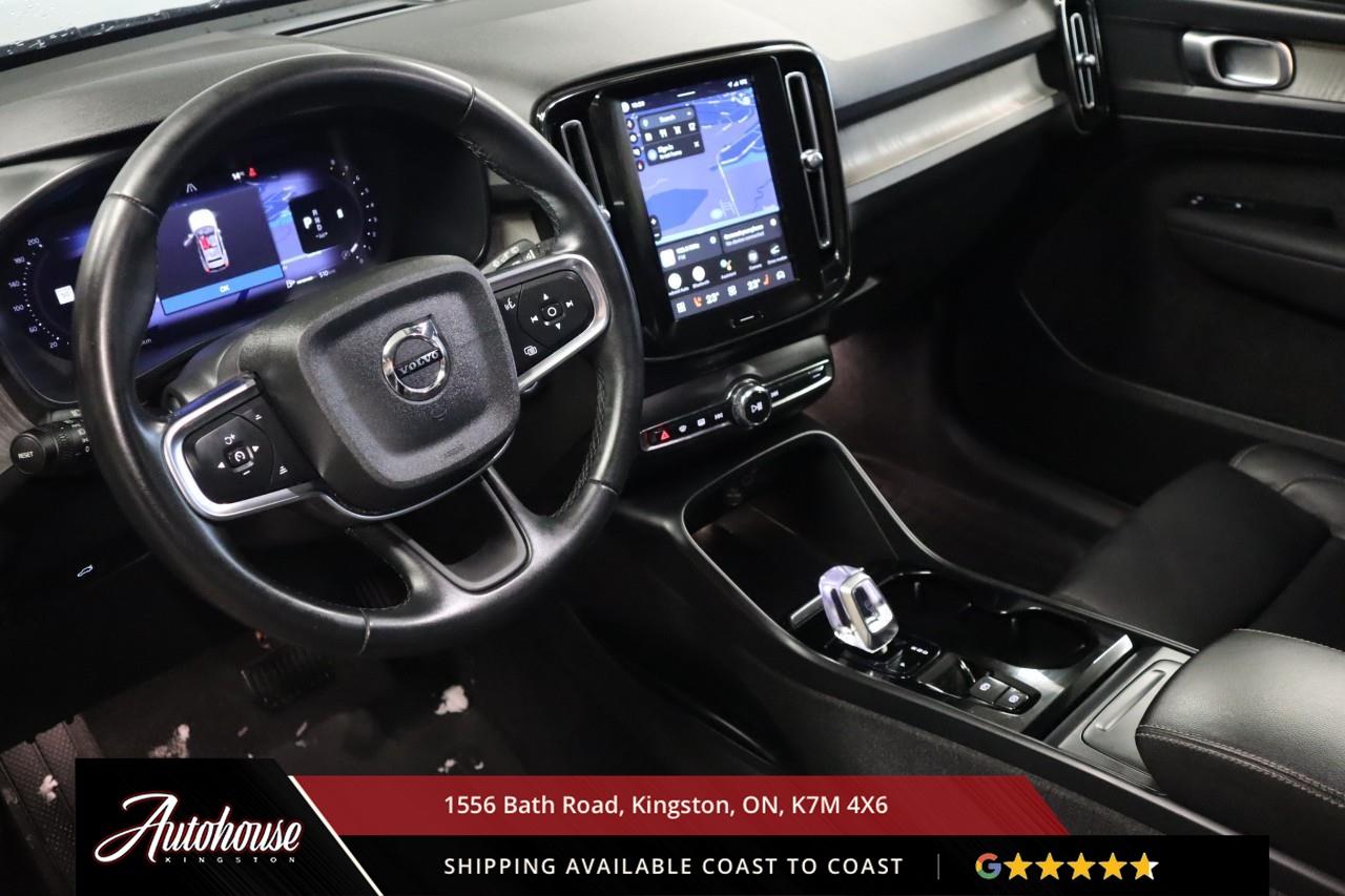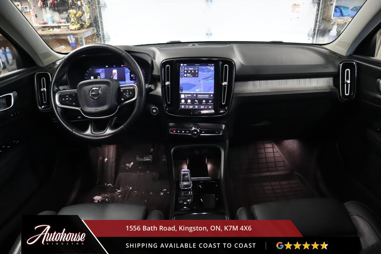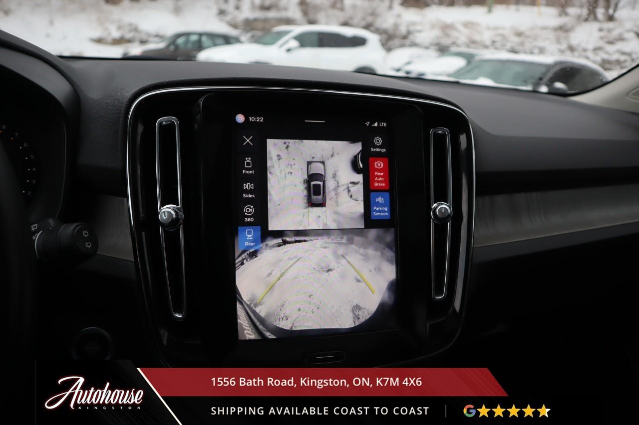 The 2024 Volvo XC40 B5 Plus Bright Package Volvo's advanced B5 mild hybrid powertrain with a 2.0-liter turbocharged inline-4 producing 247 horsepower and an estimated 9.9 L/100km city and 7.7 L/100km highway fuel efficiency through a smooth 8-speed automatic transmission with intelligent all-wheel drive. The exclusive Bright Package distinguishes its athletic stance with glossy black grille, mirror caps, roof rails, premium leather-faced seating includes power-adjustable front positions with driver memory, panoramic moonroof, dual-zone electronic climate control with advanced air purification, and a 9-inch portrait-oriented Sensus touchscreen featuring Google built-in, Apple CarPlay, Android Auto, and a fully digital 12.3-inch driver display. Volvo's IntelliSafe suite includes City Safety collision avoidance with pedestrian and cyclist detection, Pilot Assist with adaptive cruise control, Blind Spot Information System with cross-traffic alert and steering assist, 360-degree surround view camera, and run-off road mitigation. Additional luxury amenities include hands-free power tailgate with gesture control, wireless smartphone charging, heated front seats and steering wheel, keyless entry with proximity sensing, and a premium audio system. This XC40 comes with a balance of Volvo warranty along with a clean CARFAX