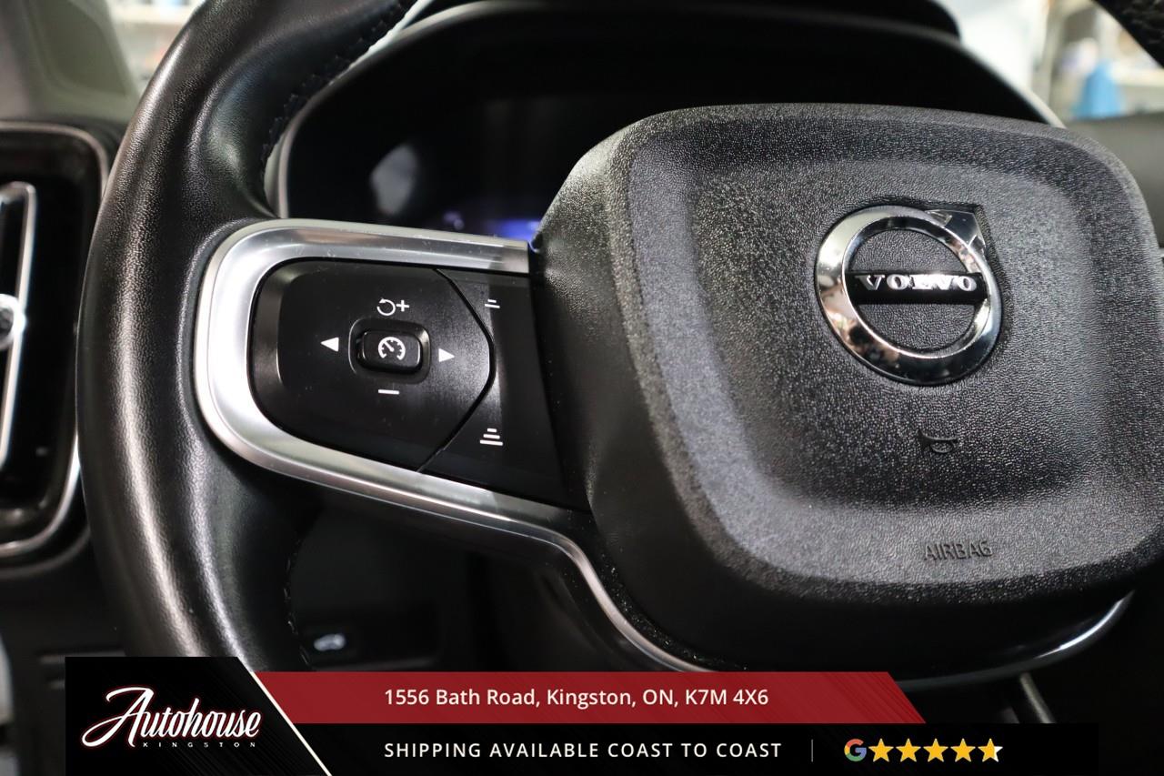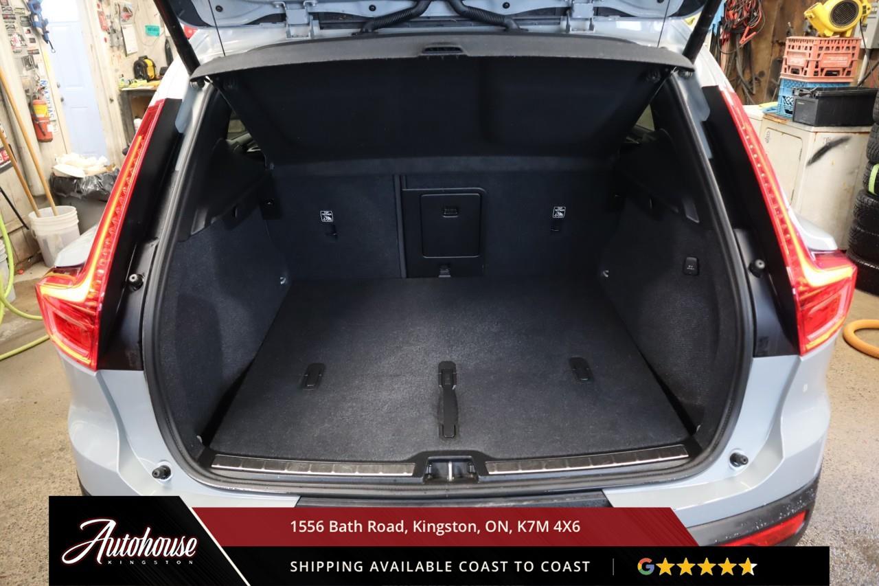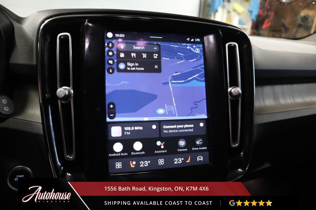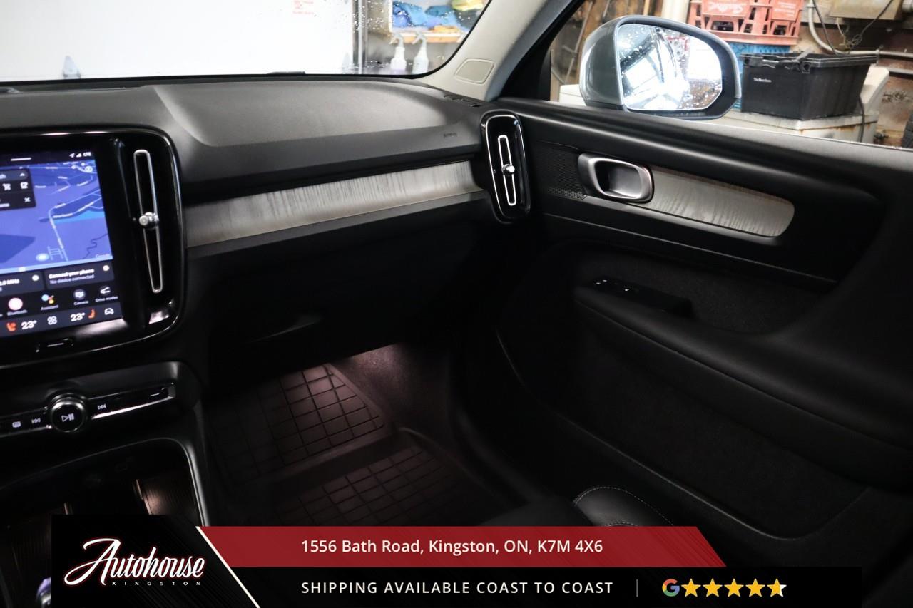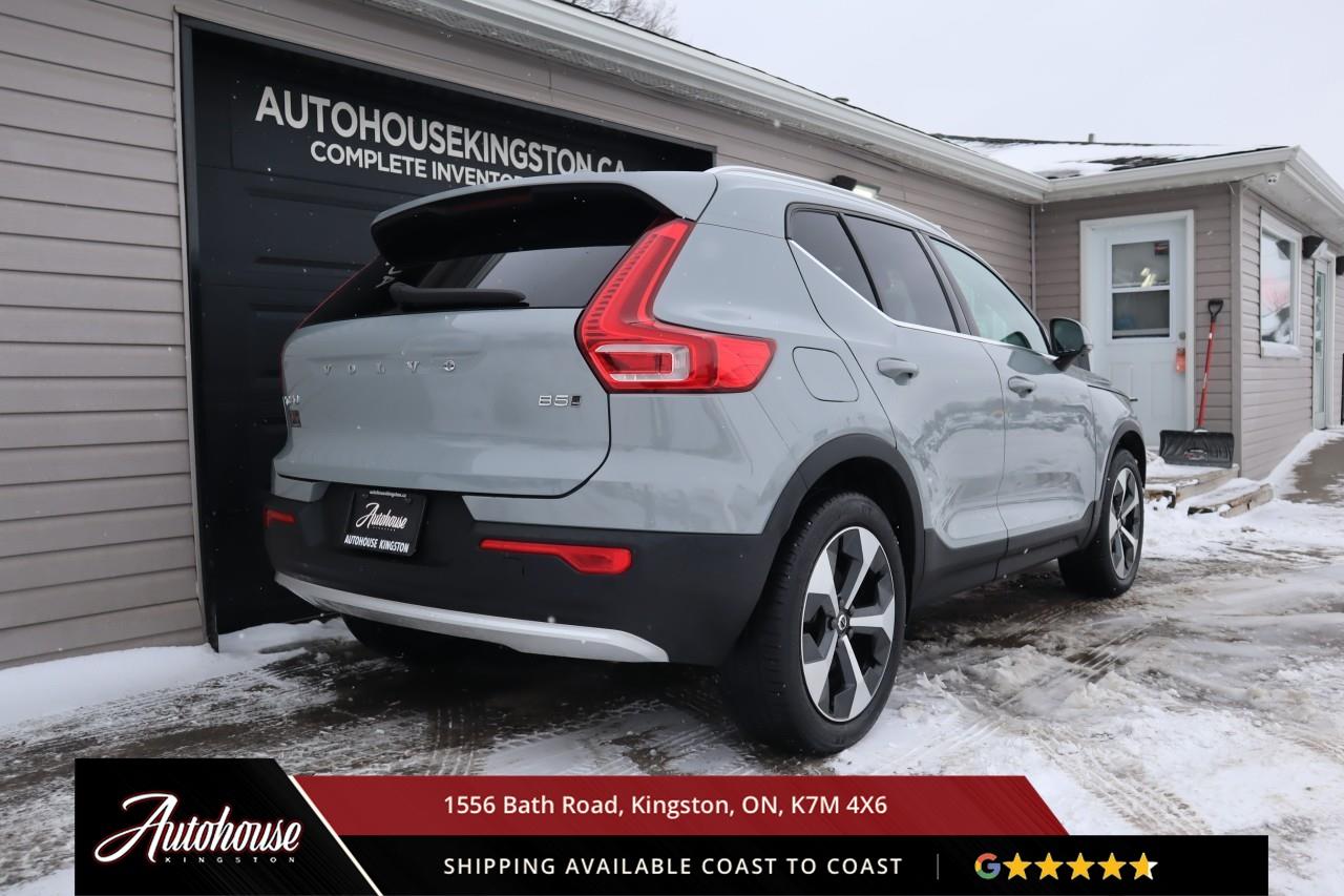 The 2024 Volvo XC40 B5 Plus Bright Package Volvo's advanced B5 mild hybrid powertrain with a 2.0-liter turbocharged inline-4 producing 247 horsepower and an estimated 9.9 L/100km city and 7.7 L/100km highway fuel efficiency through a smooth 8-speed automatic transmission with intelligent all-wheel drive. The exclusive Bright Package distinguishes its athletic stance with glossy black grille, mirror caps, roof rails, premium leather-faced seating includes power-adjustable front positions with driver memory, panoramic moonroof, dual-zone electronic climate control with advanced air purification, and a 9-inch portrait-oriented Sensus touchscreen featuring Google built-in, Apple CarPlay, Android Auto, and a fully digital 12.3-inch driver display. Volvo's IntelliSafe suite includes City Safety collision avoidance with pedestrian and cyclist detection, Pilot Assist with adaptive cruise control, Blind Spot Information System with cross-traffic alert and steering assist, 360-degree surround view camera, and run-off road mitigation. Additional luxury amenities include hands-free power tailgate with gesture control, wireless smartphone charging, heated front seats and steering wheel, keyless entry with proximity sensing, and a premium audio system. This XC40 comes with a balance of Volvo warranty along with a clean CARFAX