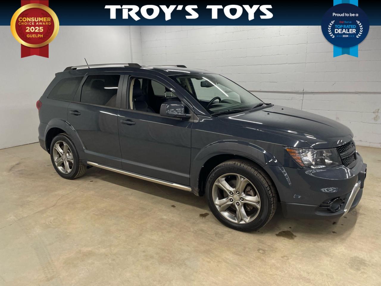 Looking for a versatile SUV that's ready for any adventure? Check out this eye-catching 2017 Dodge Journey Crossroad, now available at Troy's Toys! This stylish crossover is dressed in a vibrant blue exterior, perfectly complemented by a sleek black interior. With its automatic transmission and front-wheel drive, this Journey offers a smooth and comfortable ride, whether you're navigating city streets or heading out for a weekend getaway. This well-maintained vehicle has 165,872km on the odometer.