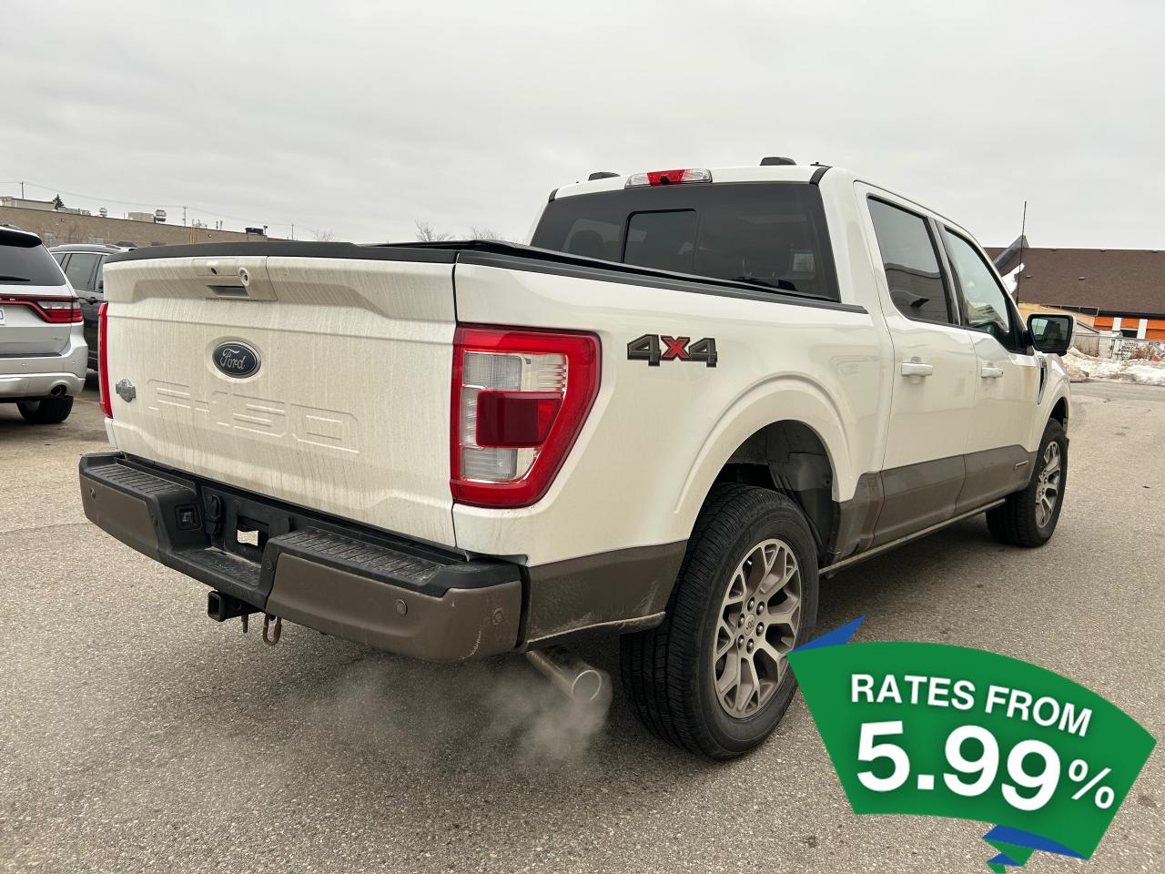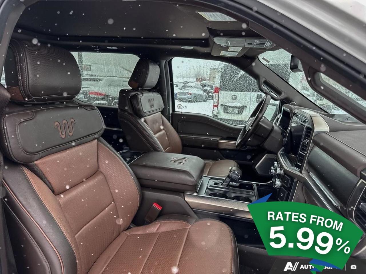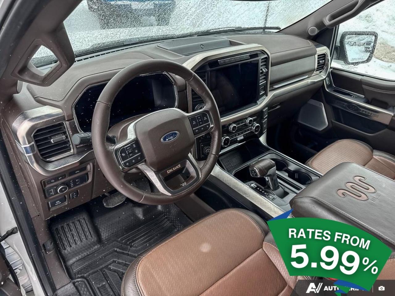 Experience the perfect blend of power and sophistication with the 2022 Ford F-150 King Ranch, a large pick-up designed for those who demand more from their vehicle. This used gem, with its robust 3.5L 6-cylinder engine, is ready to tackle any terrain with its 4x4 drivetrain, ensuring you stay in control no matter where your adventures take you. The 10-speed automatic transmission offers seamless gear shifts, enhancing your driving experience whether you're cruising on the highway or navigating rugged trails.