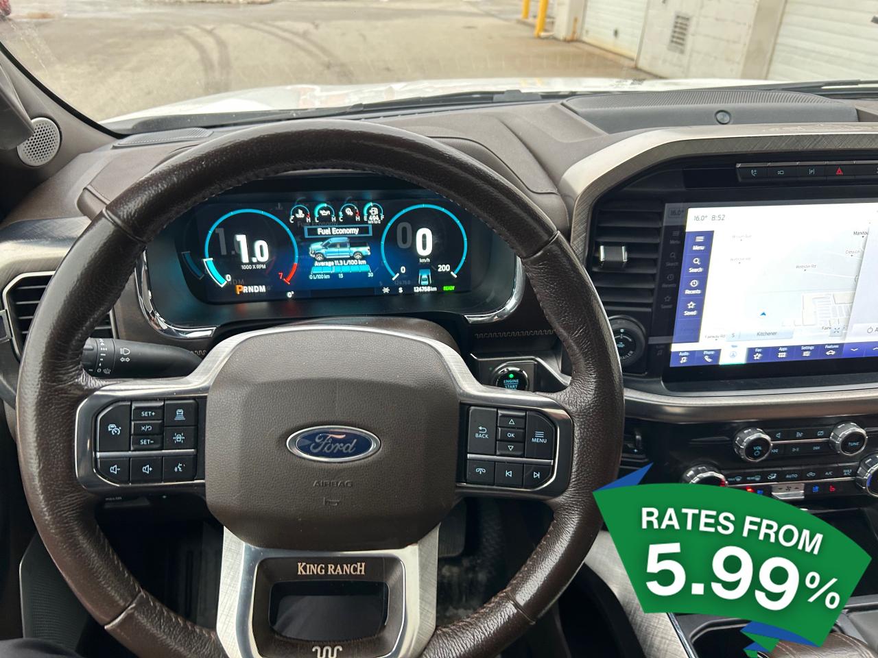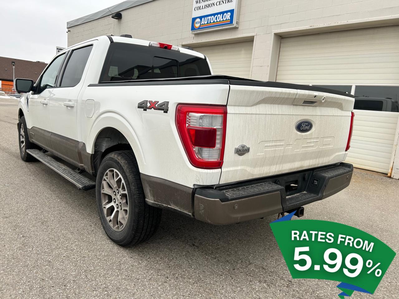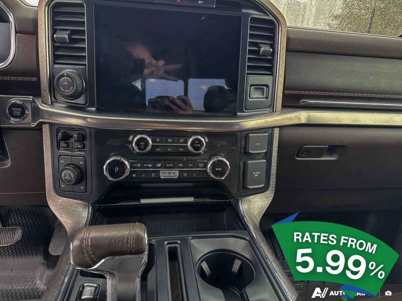 Experience the perfect blend of power and sophistication with the 2022 Ford F-150 King Ranch, a large pick-up designed for those who demand more from their vehicle. This used gem, with its robust 3.5L 6-cylinder engine, is ready to tackle any terrain with its 4x4 drivetrain, ensuring you stay in control no matter where your adventures take you. The 10-speed automatic transmission offers seamless gear shifts, enhancing your driving experience whether you're cruising on the highway or navigating rugged trails.