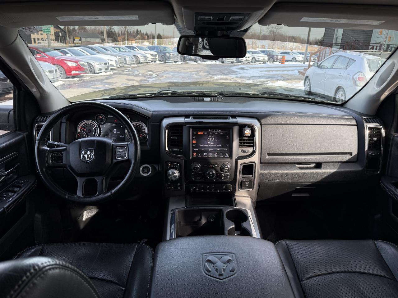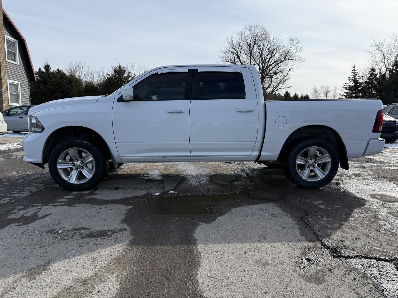 2014 RAM 1500 Sport, a bold and capable full-size truck powered by a robust engine paired with a smooth automatic transmission, offering strong performance, confident towing capability, and a sporty look. Features include Sport hood and body-colour accents // 4x4 capability // crew cab seating // durable cloth and premium interior accents // power driver and passenger seats // Uconnect infotainment system with touchscreen display // Bluetooth hands-free connectivity // premium audio system // cruise control // air conditioning // power windows and locks // power side mirrors // tow package // trailer brake controller // spray-in bedliner // chrome exhaust & sport wheels // fog lights // automatic headlights // bed cargo lighting // fold-flat rear seats // 4-wheel ABS brakes // traction control // electronic stability control // advanced airbag system // tire pressure monitoring system. A rugged and stylish truck that blends performance, capability, and everyday comfort.