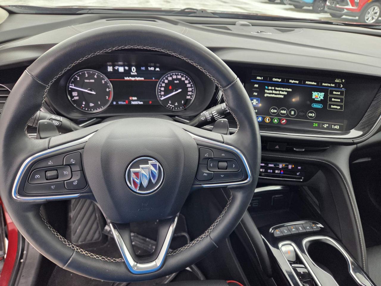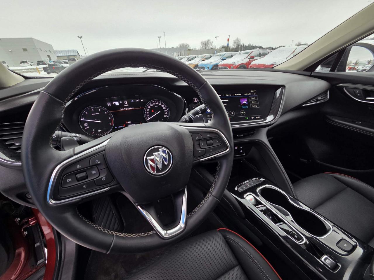 This Buick Envision Essence Sport Touring AWD Features a 2.0L Turbo Engine, 9-Speed Automatic Transmission, Cinnabar Metallic, Ebony Interior, Heated Front Bucket Seats, 8-Way Power Driver Safety Alert Seat, Heated Rear Seats Outboard Positions, Rear 40/60 Split-Bench Seat, Panoramic Moonroof, Keyless Open, Keyless Start, Remote Panic Alarm, Remote Vehicle Start, HD Surround Vision, Rear Camera Mirror, Following Distance Indicator, Front Passenger Presence Detector Sensor, Forward Collision Alert, Rear Cross Traffic Alert, Enhanced Automatic Emergency Braking, Lane Keep Assist With Lane Departure Warning, Lane Change Alert With Side Blind Zone Alert, Front Pedestrian Braking, Enhanced Auto Parking Assist, Adaptive Cruise Control, Heated Leather Wrap Steering Wheel, Tilt/TeleScopic Steering Column, Buick Infotainment System With 10" Touch Display & Navigation, Driver Instrument Info 8" Color Display, Head-Up Display, Bose® Premium 9-Speaker Audio System Feature, Teen Driver, Dual-Zone Automatic Climate Control, Deep Tinted Glass, Rear Intermittent Wiper, Hands Free Programmable Power Liftgate, LED Daytime Running Lamps, LED Headlamps, Automatic Delay Headlamps, Automatic On & Off Headlamp Control, Stabilitrak-Traction Control, Hill Descent Control, Engine Block Heater, Engine Air Filtration Monitor, Tire Pressure Monitor System, 20" Aluminum Wheels, OnStar Services Available, OnStar 4G LTE Wi-Fi Hotspot Capable, SiriusXM Satellite Radio Services Available. Unit comes with snow tires on steel wheels.