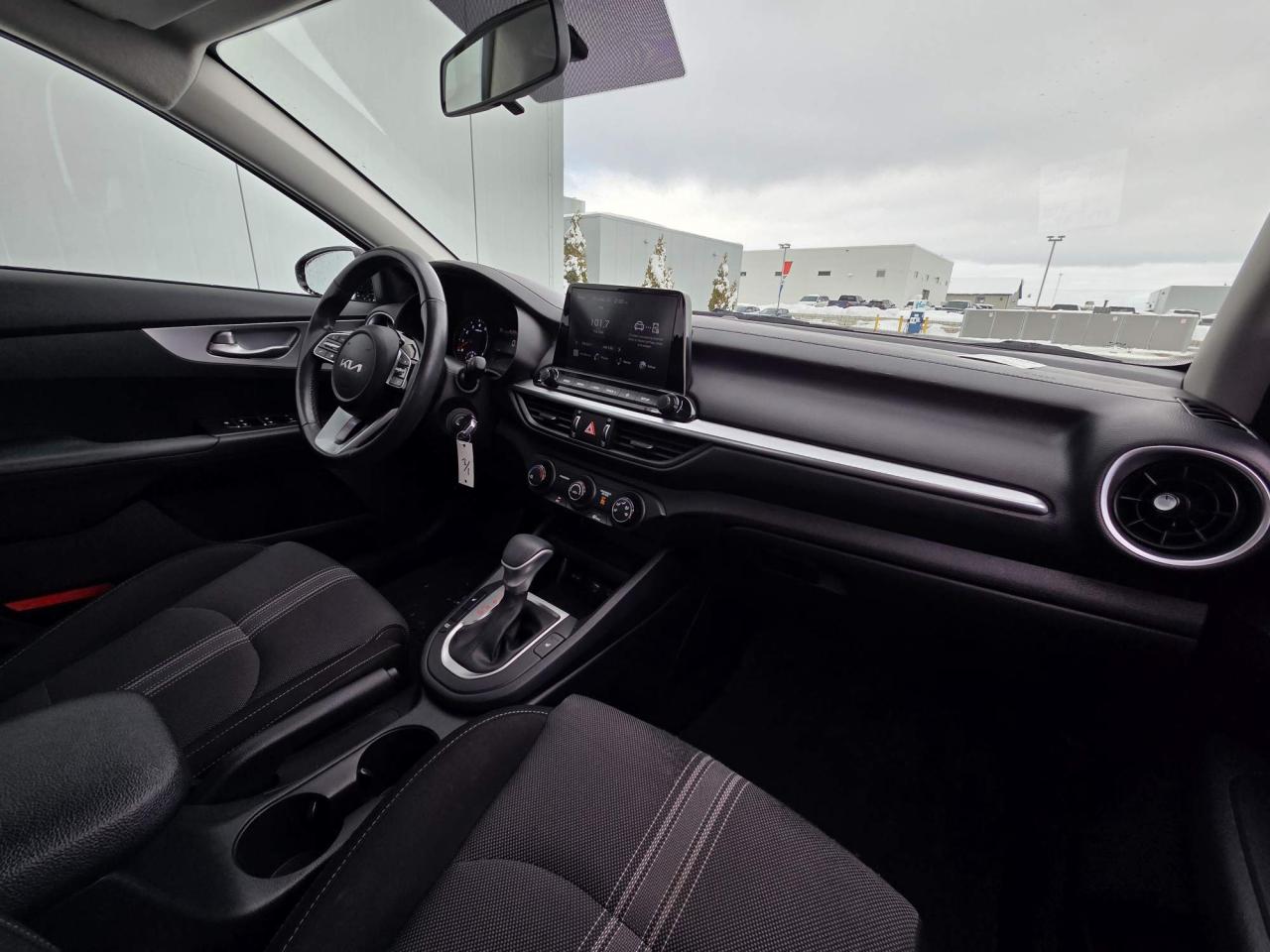 One Owner! This Kia Forte LX Sedan Features a 2.0L Engine, Intelligent Variable Transmission, Drive Mode Select, Aurora Black Exterior, Black Cloth Interior, Heated Front Seats, 60:40 Split-Folding Rear Seats, Remote Keyless Entry, Rearview Camera, Cruise Control, Leather-Wrapped Tilt/Telescopic Steering Wheel With Mounted Audio Controls, 8 Display Audio, Mono LCD/TFT Instrument Cluster, Air Conditioning, Heated Sideview Mirrors, Dual Exhaust Appearance, Automatic Headlights, Halogen Projection Headlights, LED Daytime Running Lights, Electronic Stability Control, Hill-Assist Control, 15" Steel Wheels. Unit comes with winter tires on black steel wheels.