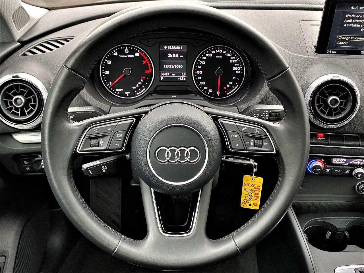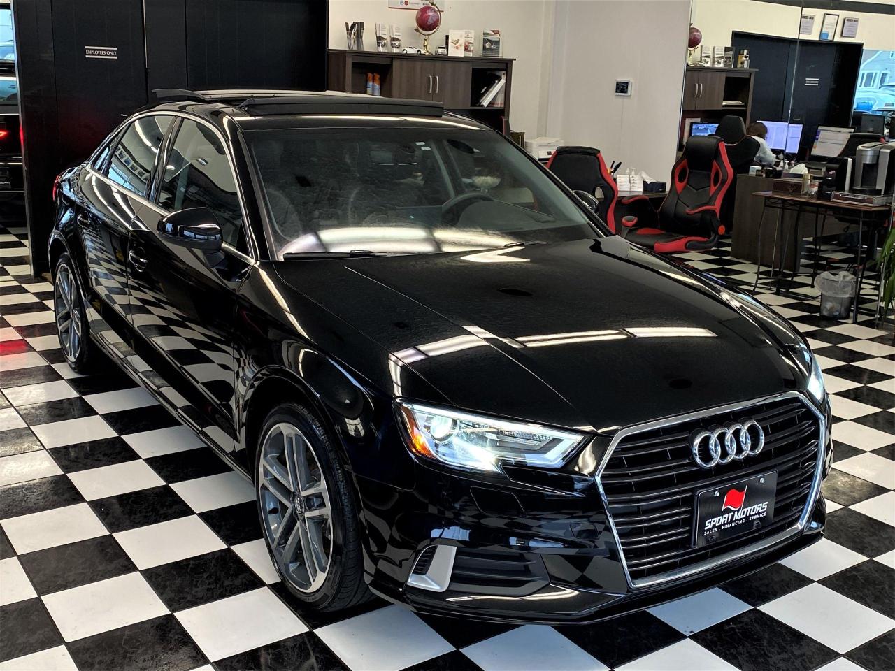 A3 PROGRESSIV TFSI S-tronic+Panoramic Roof+Navigation+Rear View Camera+Apple & Android CarPlay+Bluetooth+Power Heated Leather Seats+Keyless Push Button Start & Entry+AUX & USB Input+XM Radio+2 Keys+Balance of Audi Comprehensive Factory Warranty (4 Years or 80,000 KMs)