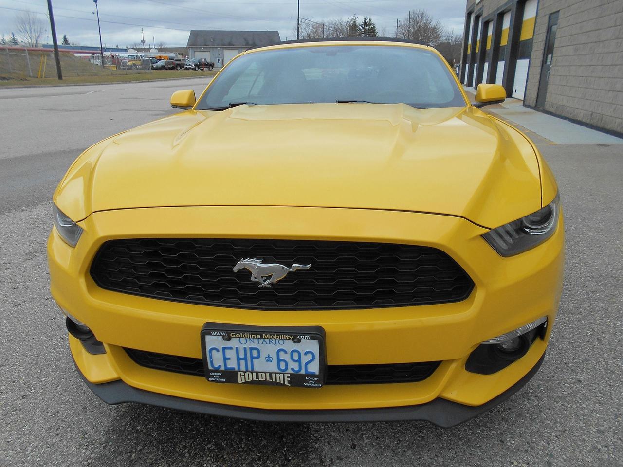 Only 41,760 km, 2017 Ford Mustang Convertible, 3.7L V6 DOHC 24V, Automatic. Very Clean, No Accidents. Finished in Triple Yellow with Black Cloth Interior and Soft Top.