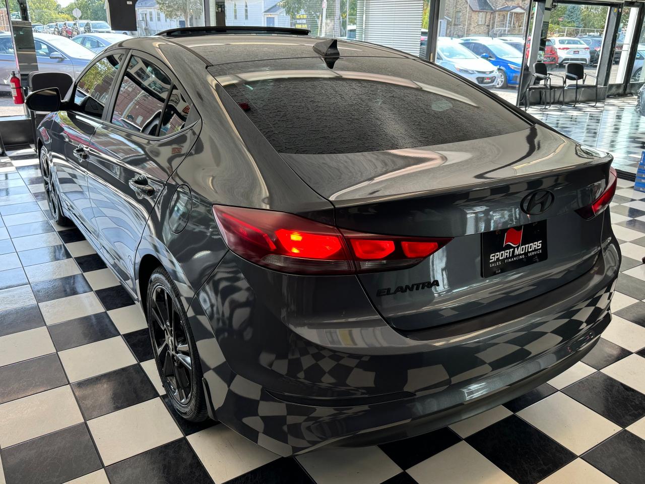 Ø This Elantra is equipped with: Rear View Camera, Blind Spot Monitor, Rear Cross Traffic Alert, Cruise Control, Automatic Rain Sensing Wipers, Traction & Stability Control, Automatic Headlights, Apple Carplay, Android Auto, Sirius XM Radio, Bluetooth, USB Input, Heated Seats (Front & Rear), Sunroof, Leather Steering Wheel, Comfort Access Key System, Keyless Push Button Start, & A/C!