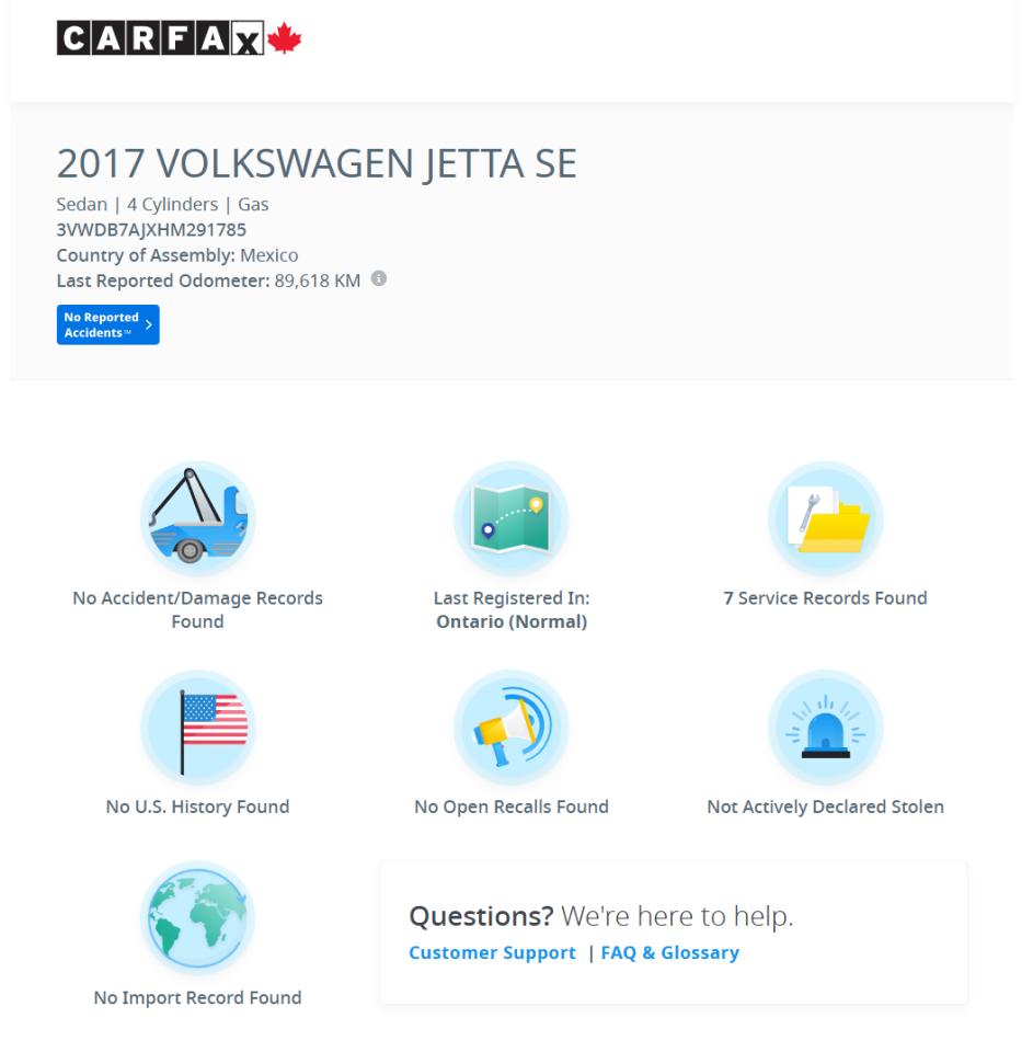 9.    Carfax History Verified Report