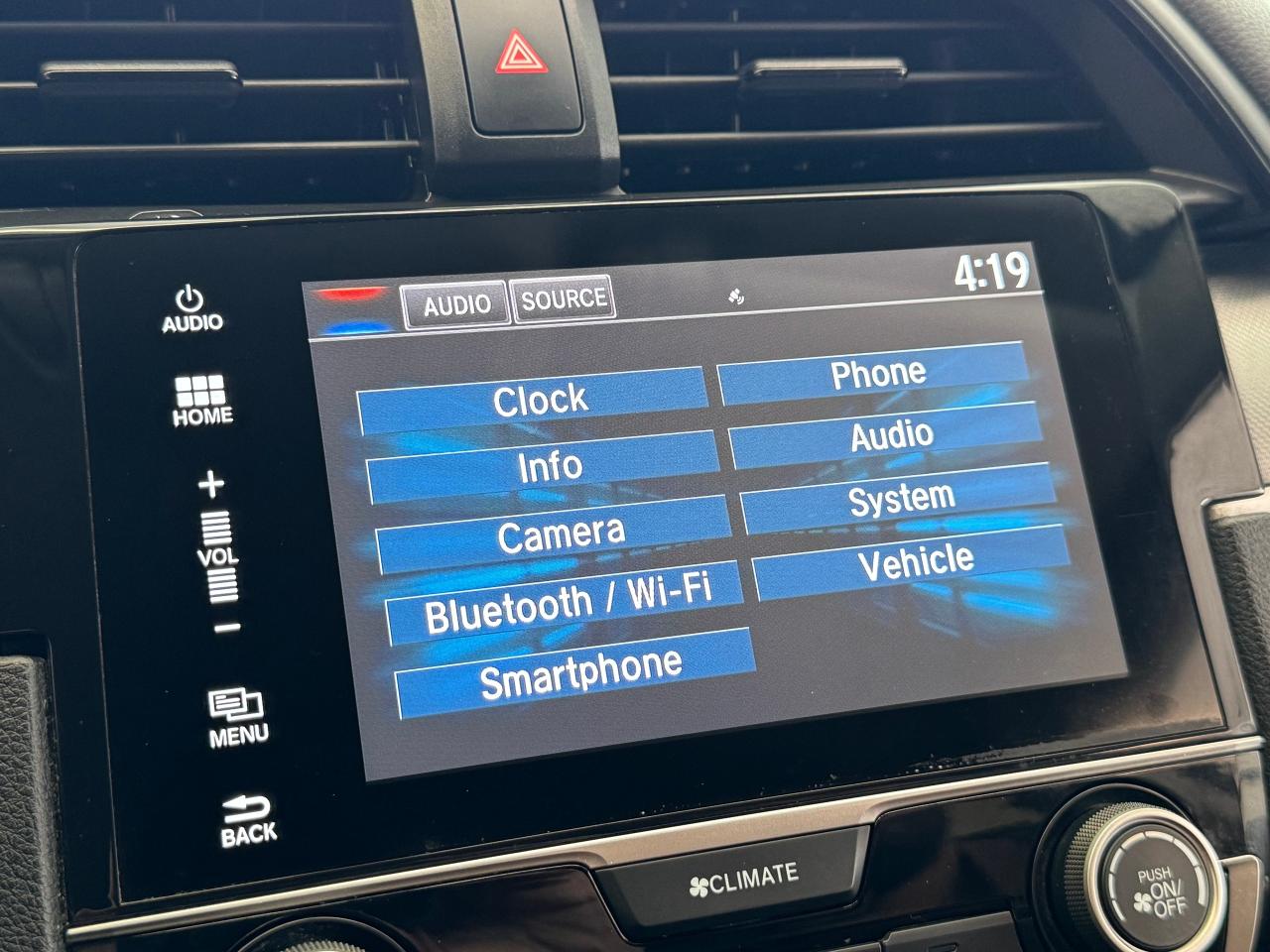 Ø  This Civic is equipped with Intelligent Driver Safety Assist: Rear View Camera, Cruise Control, Auto Hold Brakes, Traction & Stability Control, Automatic Headlights, Apple Carplay, Android Auto, Sirius XM Radio, Bluetooth, USB Input, Heated Seats, & Tinted Windows!