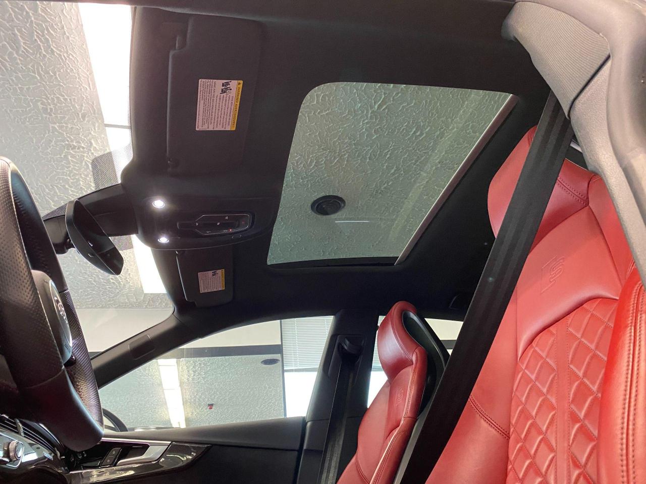 S5 W/Black Optics PKG+Red Leather+Red Calipers+Carbon Fiber Interior Trims+(Active Blind Spot Detection)+Navigation+360 Camera+Front & Rear Parking Sensors+Adaptive LED Lights+Navigation+Panoramic Sunroof+Power Leather Heated Memory Front Seats+Heads Up Display+Bluetooth+Band & Olufsen Sound System+Electric Sun Shades +BALANCE OF AUDI COMPREHENSIVE FACTORY WARRANTY (Valid Until August 21st, 2024 or 80,000 KMs)
