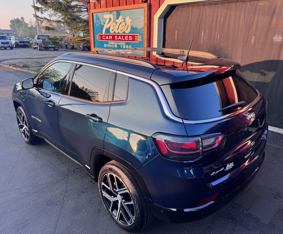 HERE'S A BEAUTY!! 2024 JEEP COMPASS LIMITED ELITE 4X4. ONLY 12,500 KMS! SHARP FATHOM BLUE PEARL METALLIC WITH A BLACK ROOF. 19" ELITE PACKAGE RIMS. 2.0 LTR TURBO 4 CYL WITH AN 8 SPEED TRANS. CHRYSLER COMPANY CAR. CARFAX CANADA CLEAN.....NO ACCIDENTS. LIKE NEW CONDITION! THIS MODEL IS $57,000.00 TO PURCHASE NEW. TOO MANY OPTIONS TO LIST ALL BUT INCLUDES NAVIGATION ON A 10" TOUCH DISPLAY. APPLE CAR PLAY & ANDROID AUTO. FULL PANORAMIC SUNROOF. HEATED & COOLED PREMIUM LEATHER SEATS. PREMIUM ALPINE SOUND SYSTEM. REMOTE START. POWER REAR HATCH. REARVIEW & SURROUND VIEW CAMERA. ALL WHEEL DRIVE LOCK OPTION WITH 3 AWD MODES. LANE KEEP ASSIST. FRONT & REAR COLLISION AVOIDANCE. BLIND SIDE ALERT. PUSH BUTTON START WITH SENTRY ENTRY. HEATED STEERING WHEEL & MUCH MORE! WARRANTY START DATE IS AUG. 7, 2024. BALANCE OF JEEP WARRANTY IS 3YR/60,000 KM B TO B & 5YR/100,000 KM POWER TRAIN. WAS $41,900.00.....NOW $39,995.00!! (hst & mto fees extra) SAVE $15K FROM NEW WITH ONLY 12,500 KMS! CONTACT CHRIS @ 905-774-1965 or petescarsales@gmail.com www.petescarsales.com