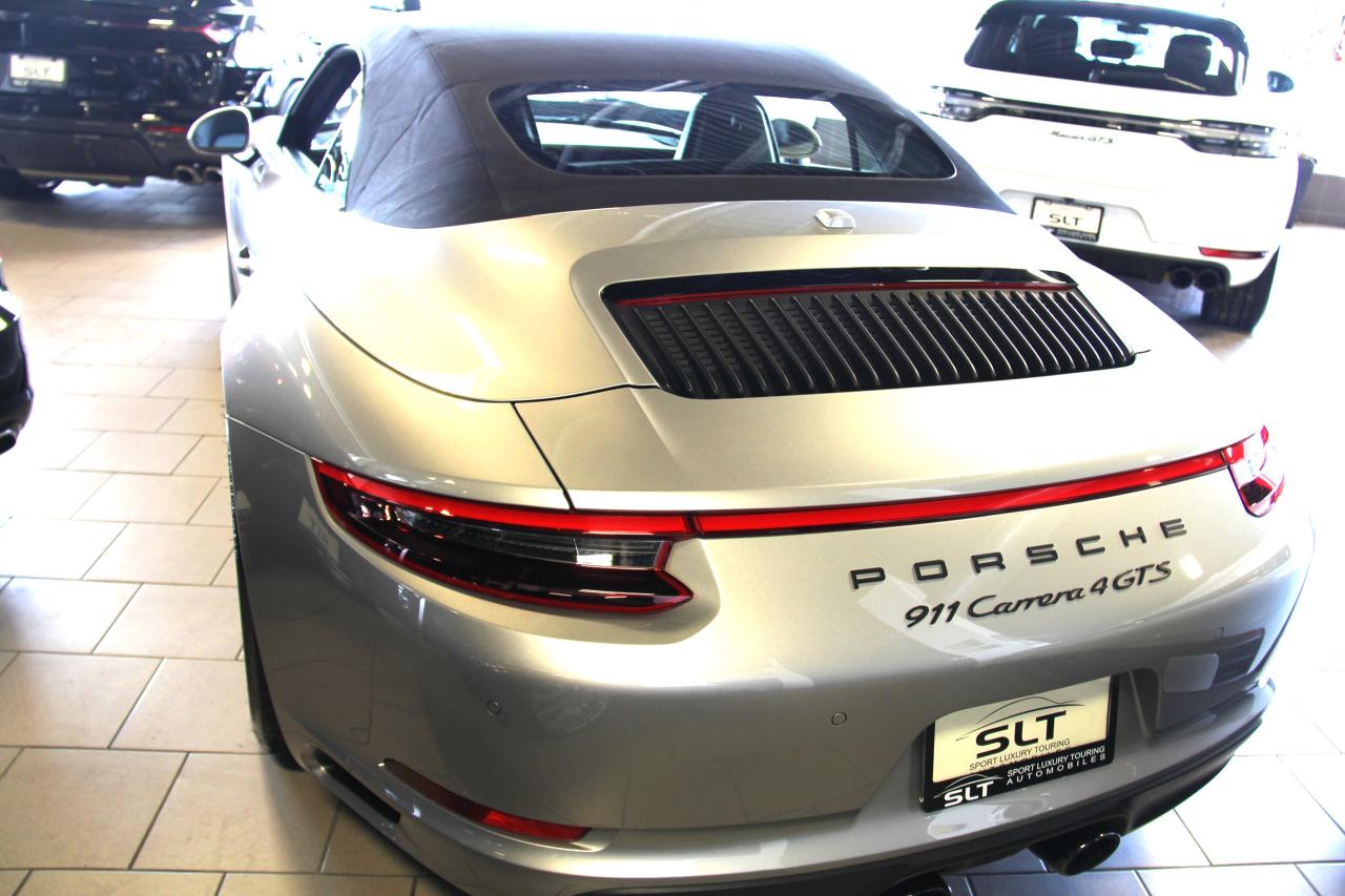 2019 PORSHE 911 CARRERA 4 GTS CABRIOLET. GT SILVER METALIC WITH BLACK LEATHER INT, PREMIUM PACKAGE PLUS, ADAPTIVE SPORT SEATS PLUS (18 WAY), RED CALIPERS, COMPETE WITH PORSCHE SPORT AND LUXURY OPTIONS, 190K TOTAL BUILD BEFORE TAXES!