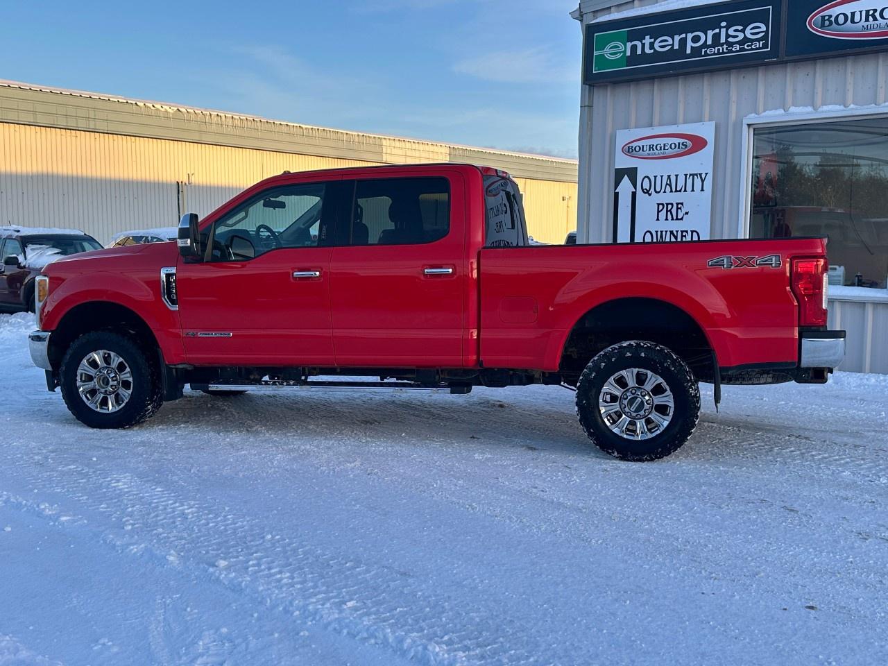 The 2017 Ford Super Duty F-250 SRW XLT, with its striking red exterior and robust 4x4 drivetrain, is designed for those who demand power and reliability in a truck. This versatile vehicle is equipped with an automatic transmission, ensuring a smooth and controlled drive, whether you're navigating city streets or rugged off-road terrain.