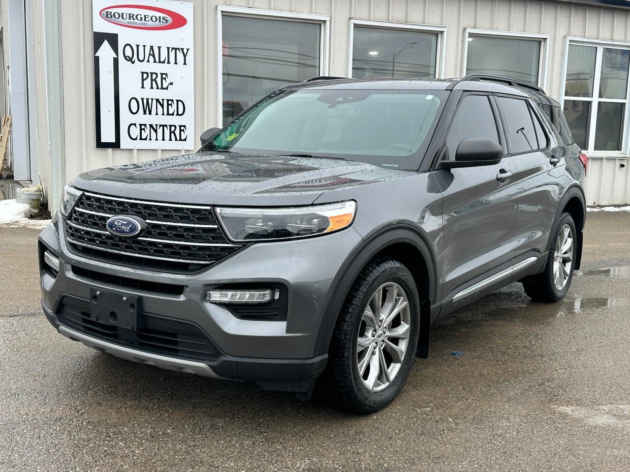The 2021 Ford Explorer XLT 4WD in a sophisticated gray finish with a dynamic 4×4 drivetrain offers exceptional handling and versatility, perfect for those rugged Canadian trails and smooth urban roads alike.