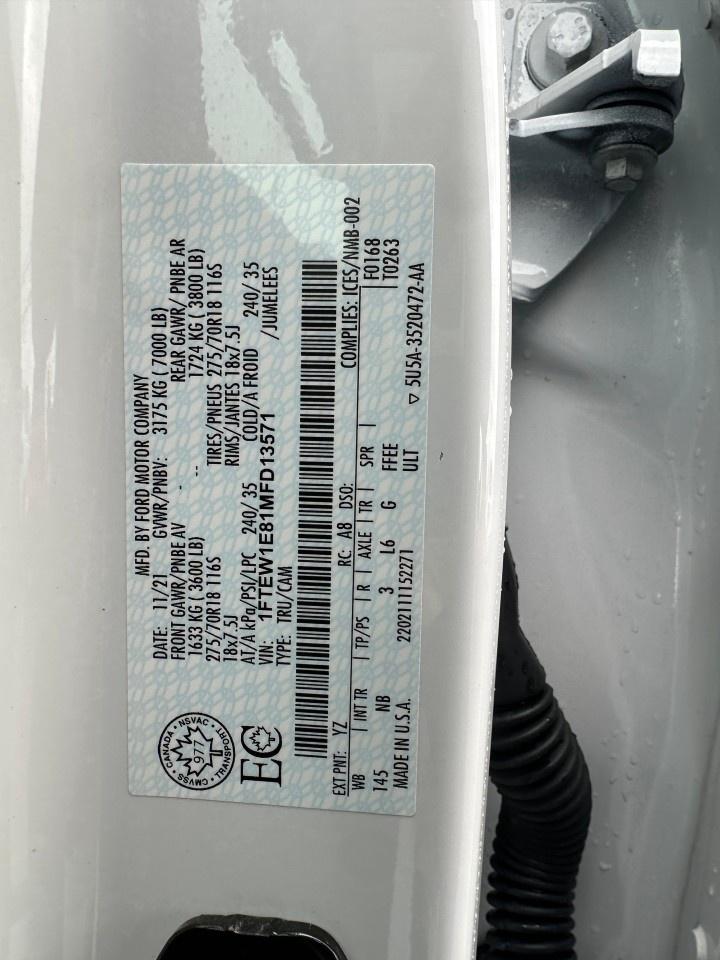 The 2021 Ford F-150 Tremor, with its striking white exterior and robust 4×4 drivetrain, is engineered for outstanding handling on and off the road. This Tremor 4WD SuperCrew 5.5' Box is tailored for those who need both power and versatility, boasting a 3.5L 6-cylinder engine that promises a remarkable performance.