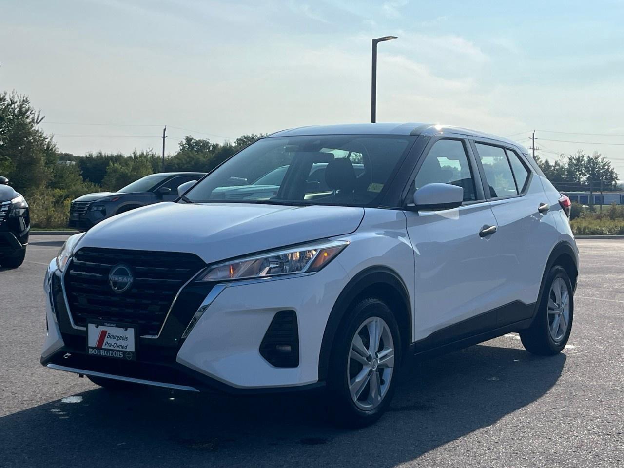 The 2022 Nissan Kicks S in pristine white with front-wheel drive and a responsive automatic transmission promises a dynamic and comfortable drive. This compact SUV is designed to grip city streets with confidence, powered by its efficient 1.6L 4-cylinder engine delivering 122 horsepower at 6300 RPM.