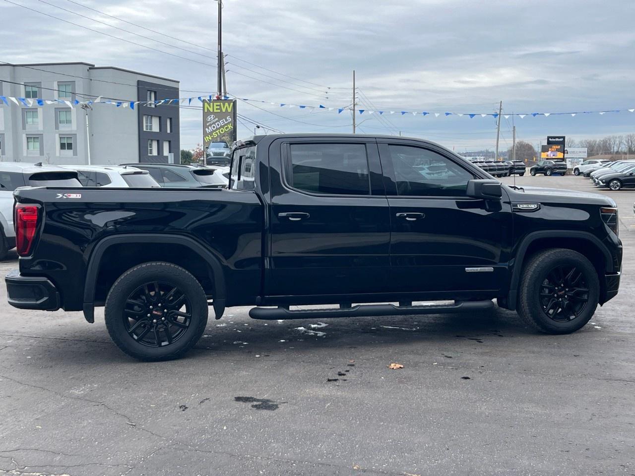 Introducing the 2023 GMC Sierra 1500 Elevation in a striking black exterior with a robust 4x4 drivetrain that promises exceptional handling on any terrain. This truck is designed to impress with its bold stance and modern aesthetic, perfect for those who demand both style and performance.