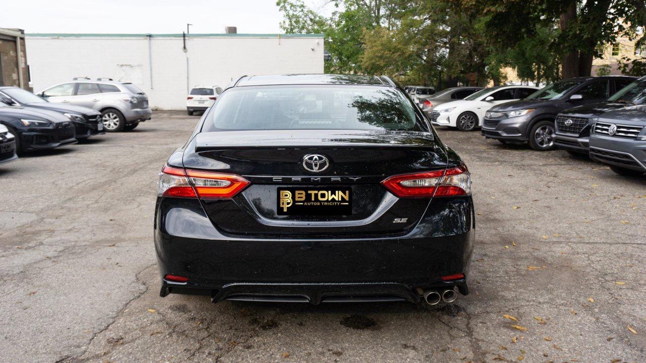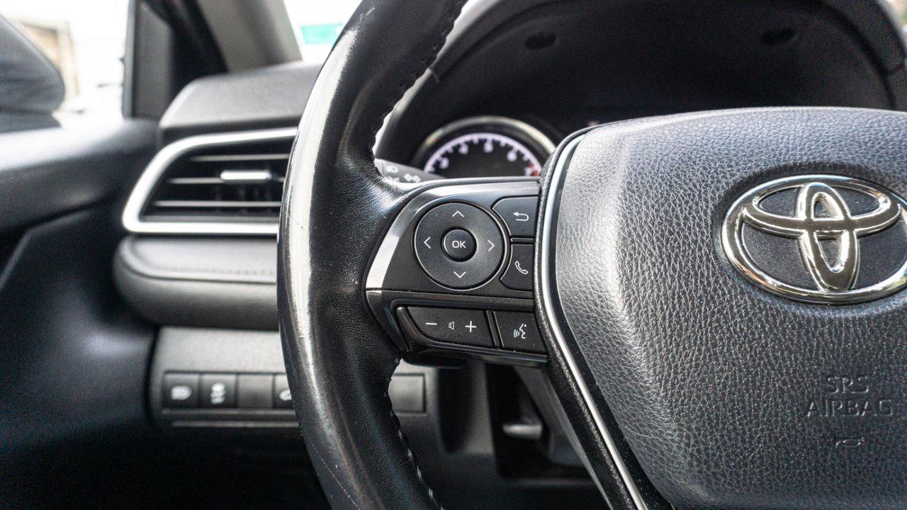 The 2018 Toyota Camry SE blends sporty design with everyday comfort, powered by a reliable 2.5L 4-cylinder engine. It features sport-tuned suspension, alloy wheels, leather-trimmed steering wheel, backup camera, and Bluetooth® connectivity—perfect for style, performance, and efficiency in one sleek sedan.