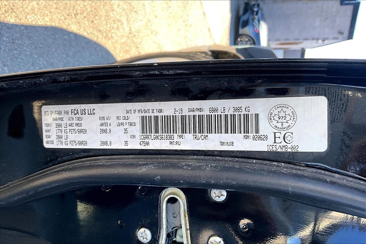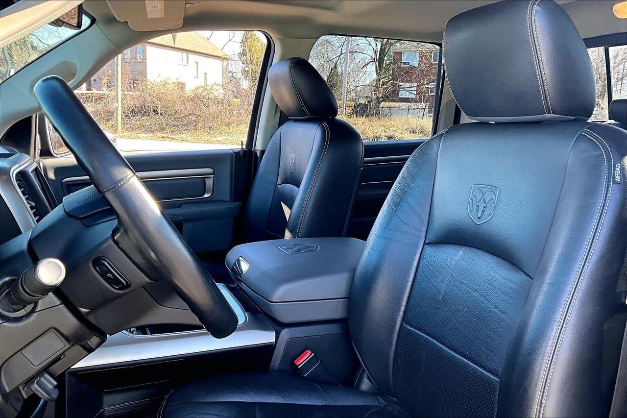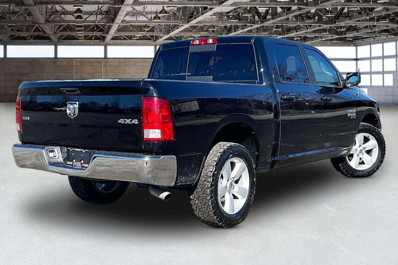 A rare mix of comfort and capability in a V6 4X4, this 2019 Ram 1500 SLT Crew Cab in Diamond Black Crystal Pearl delivers smooth, efficient performance from the 3.6L Pentastar V6 with 305 hp and 269 lb-ft of torque, making it an easy daily driver that still has the strength for weekend work. Inside, it stands out from a typical SLT with heated leather bucket seats, a heated steering wheel, a power sunroof, and the Luxury Group adding those extra touches that make every drive more enjoyable, while the Uconnect 8.4 touchscreen with navigation, Apple CarPlay and Android Auto keeps everything connected and intuitive. The auto-dimming rearview mirror adds everyday convenience, and the cabin overall feels far more premium than expected for this trim. On the functional side, it is properly set up with LED bed lighting, a spray-in bedliner, and upgraded BFGoodrich KO2 all-terrain tires that give it a tougher stance and better traction in all conditions. With One Owner and Clean Carfax history, this is a well-equipped Ram that blends comfort, efficiency, and real 4X4 capability in a package that delivers strong value.