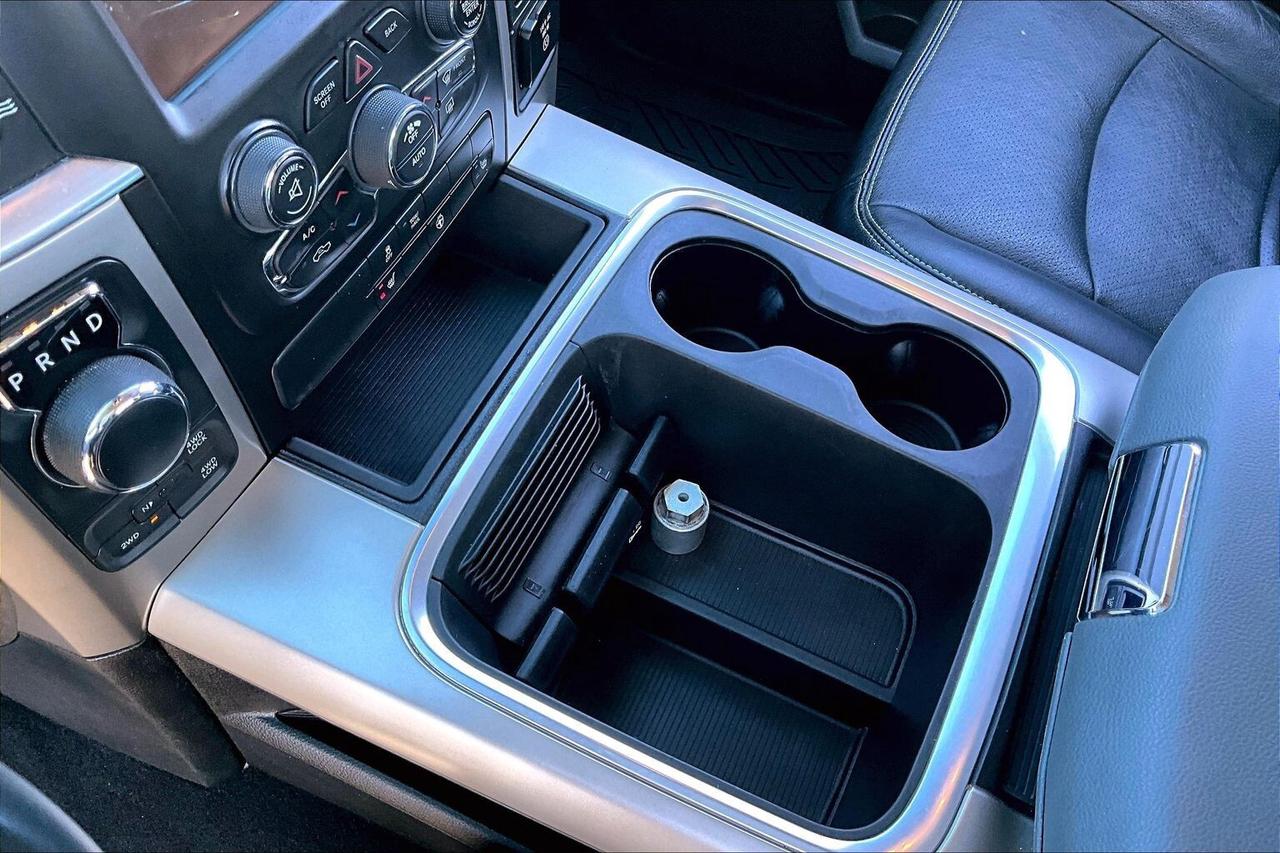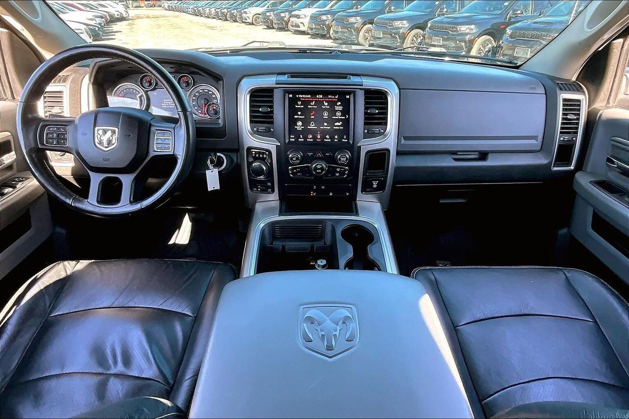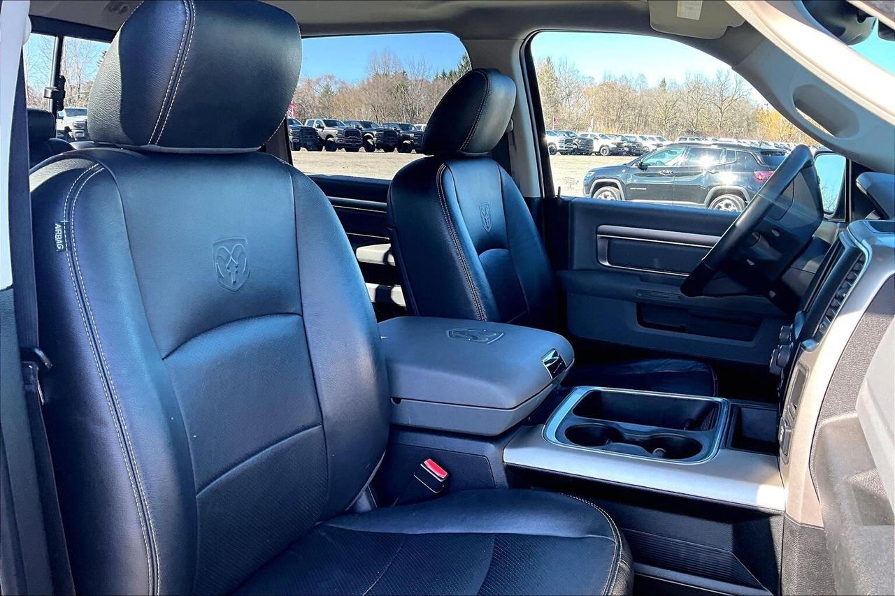 A rare mix of comfort and capability in a V6 4X4, this 2019 Ram 1500 SLT Crew Cab in Diamond Black Crystal Pearl delivers smooth, efficient performance from the 3.6L Pentastar V6 with 305 hp and 269 lb-ft of torque, making it an easy daily driver that still has the strength for weekend work. Inside, it stands out from a typical SLT with heated leather bucket seats, a heated steering wheel, a power sunroof, and the Luxury Group adding those extra touches that make every drive more enjoyable, while the Uconnect 8.4 touchscreen with navigation, Apple CarPlay and Android Auto keeps everything connected and intuitive. The auto-dimming rearview mirror adds everyday convenience, and the cabin overall feels far more premium than expected for this trim. On the functional side, it is properly set up with LED bed lighting, a spray-in bedliner, and upgraded BFGoodrich KO2 all-terrain tires that give it a tougher stance and better traction in all conditions. With One Owner and Clean Carfax history, this is a well-equipped Ram that blends comfort, efficiency, and real 4X4 capability in a package that delivers strong value.