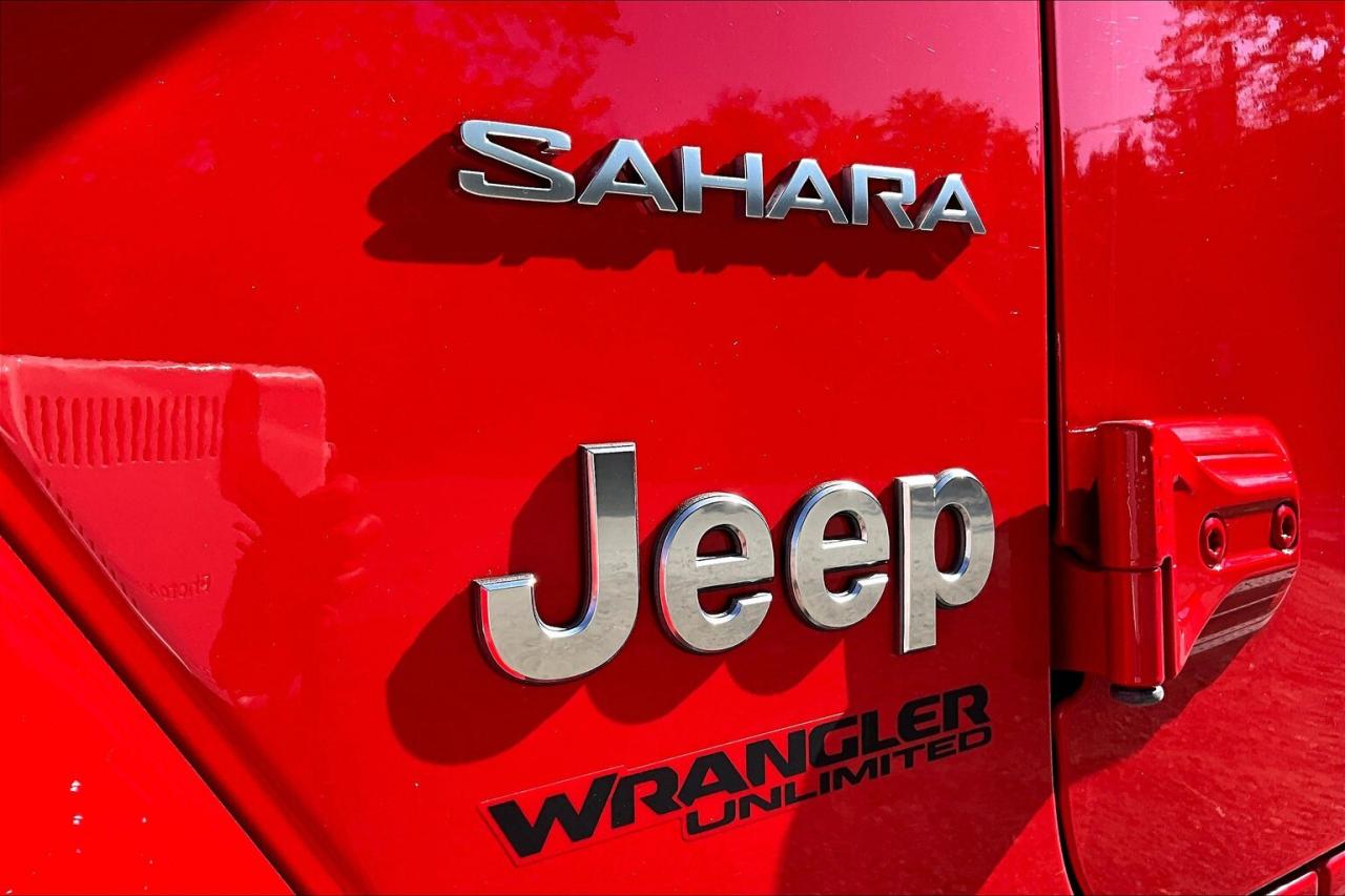 2021 Jeep Wrangler Unlimited Sahara 4X4 | 2.0L Turbocharged I-4 Engine | Firecracker Red | Heated Cloth Bucket Seats | Uconnect 8,4" Touchscreen Display w/ Navigation | Alpine Premium Audio System | Apple CarPlay & Android Auto | Heated Steering Wheel | Remote Start | Body-colour Freedom 3-piece Hard Top | Remote Proximity Keyless Entry | Dual-zone Automatic Climate Control