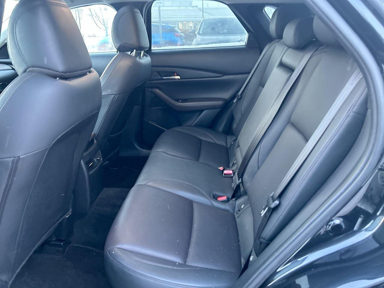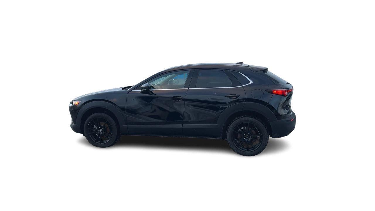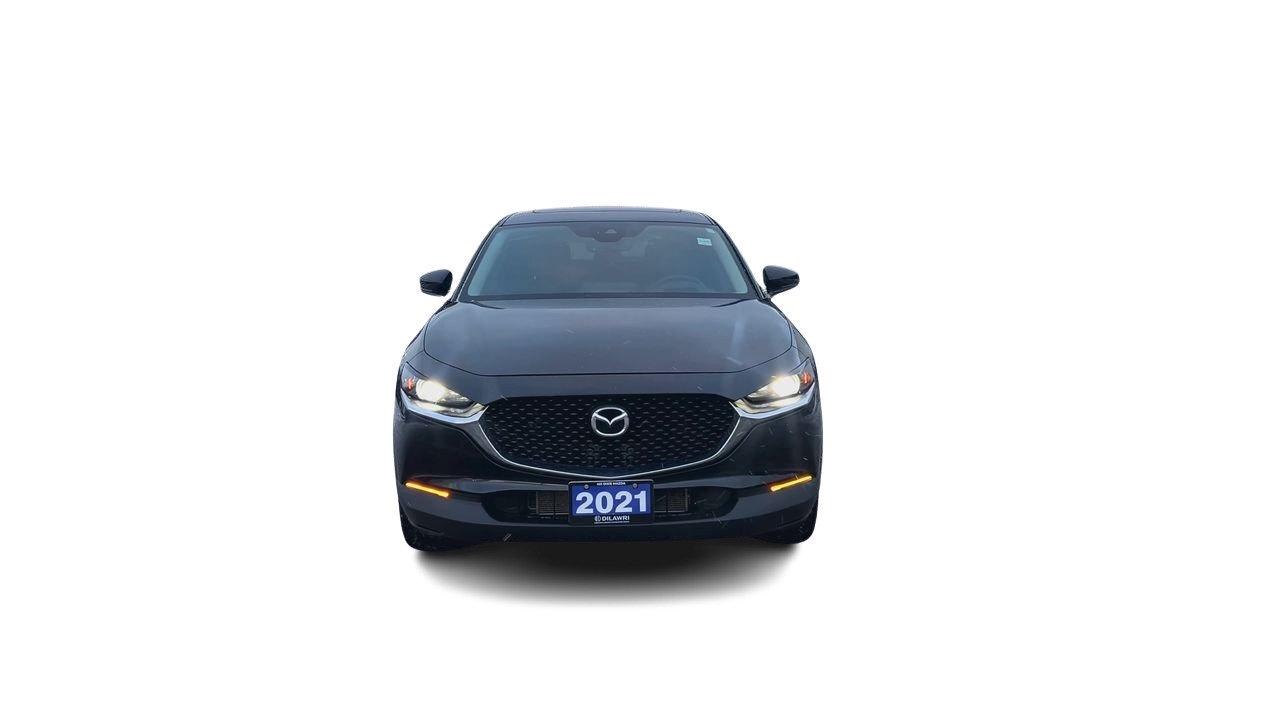 The 2021 Mazda CX-30 GT is the fully loaded trim, offering a premium feel with its 2.5-litre engine, standard i-Activ AWD, leather-trimmed interior, 12-speaker Bose audio, navigation, head-up display, and power liftgate. It adds advanced safety tech like adaptive cruise control, lane-keep assist, blind-spot monitoring, and rear smart braking, along with LED signature lighting and 18-inch alloy wheels. The GT blends strong refinement, upscale features, and confident all-weather performance in a compact SUV package.