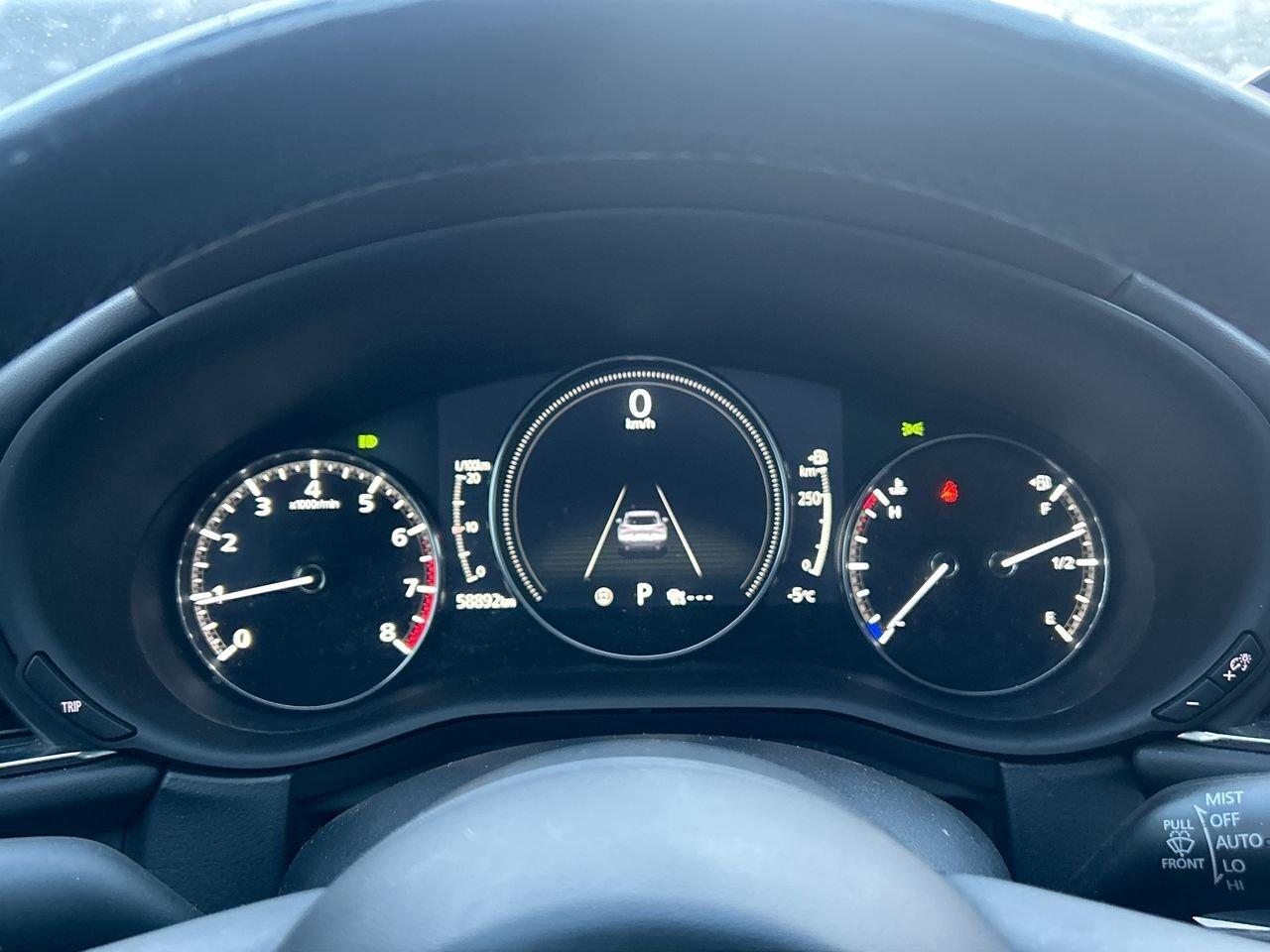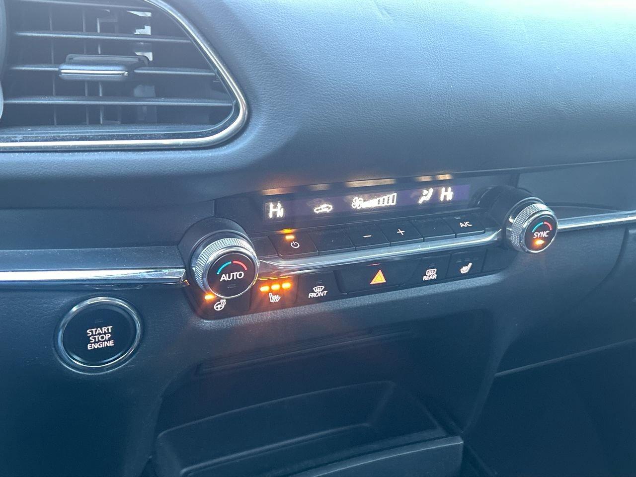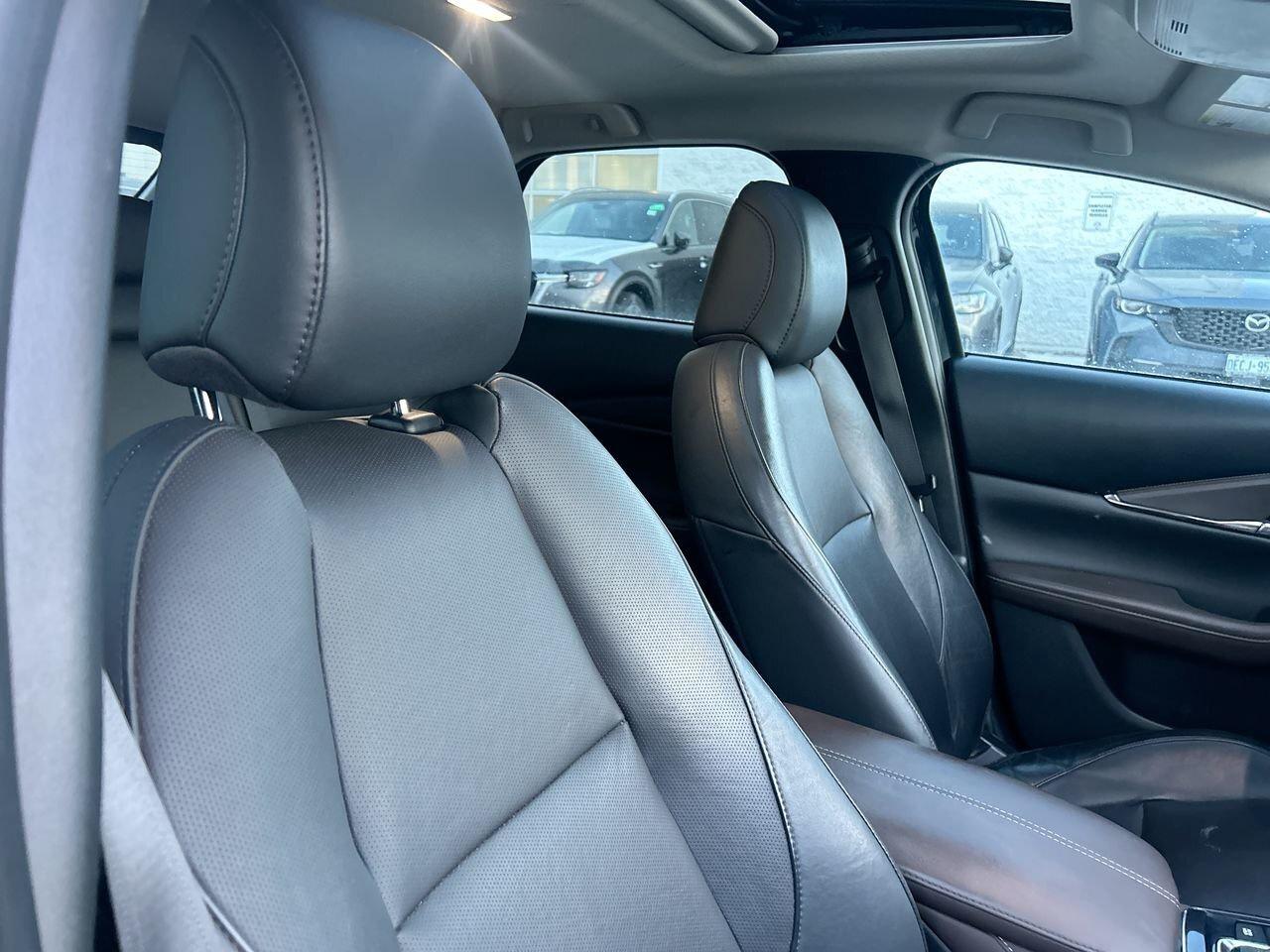 The 2021 Mazda CX-30 GT is the fully loaded trim, offering a premium feel with its 2.5-litre engine, standard i-Activ AWD, leather-trimmed interior, 12-speaker Bose audio, navigation, head-up display, and power liftgate. It adds advanced safety tech like adaptive cruise control, lane-keep assist, blind-spot monitoring, and rear smart braking, along with LED signature lighting and 18-inch alloy wheels. The GT blends strong refinement, upscale features, and confident all-weather performance in a compact SUV package.