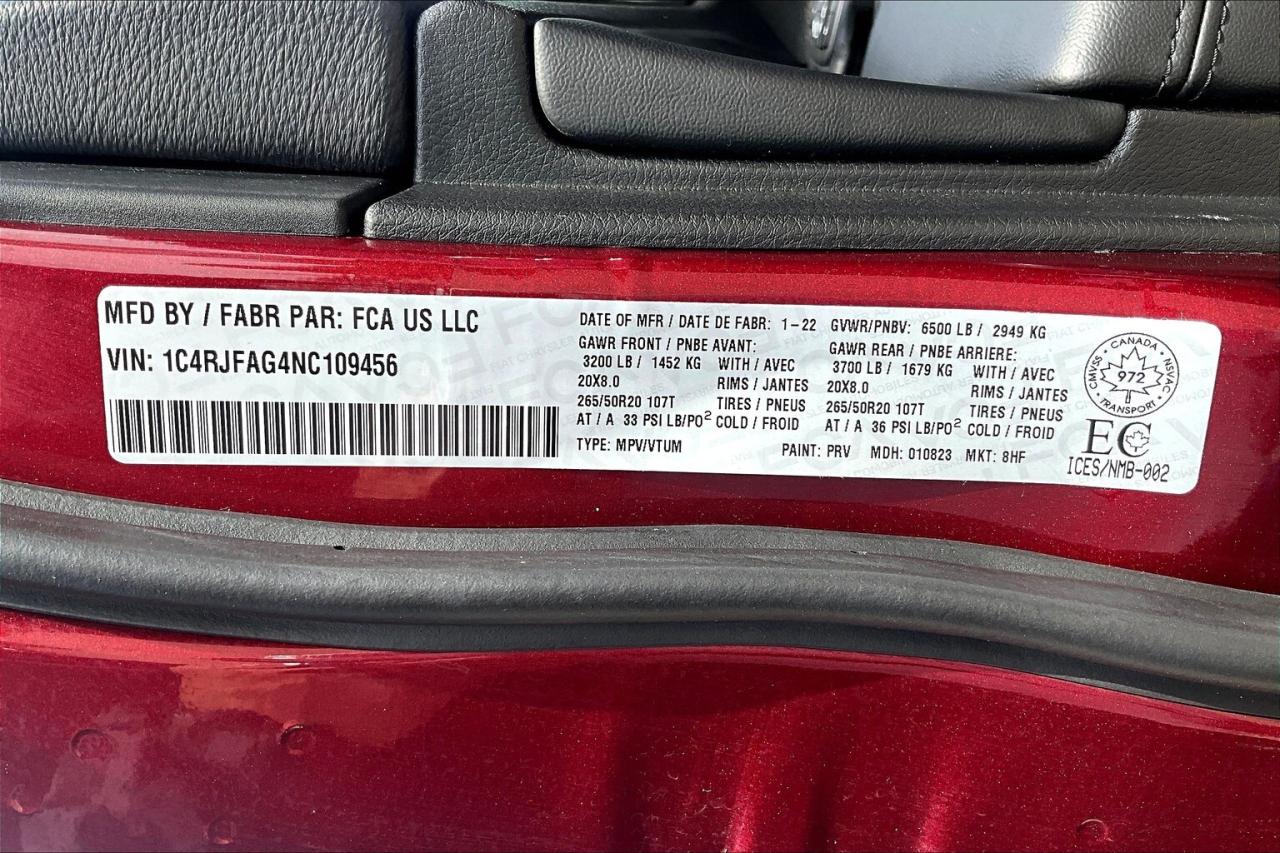 2022 Jeep Grand Cherokee Altitude 4X4 | 3.6L V6 | Velvet Red Pearl | FULLY LOADED | Leather-faced Seats w/ Perforated Suede Inserts | Heated Seats | ProTech Group | Power Sunroof | Uconnect 8.4" Touchscreen Display w/ Navigation | Alpine Premium Audio System | Lane Keep Assist | Forward Collision Warning | Blind Spot Monitoring | Trailer Tow Group IV | All-weather Capability Group | Class IV Hitch Receiver | Quadra-trac II 4X4 System