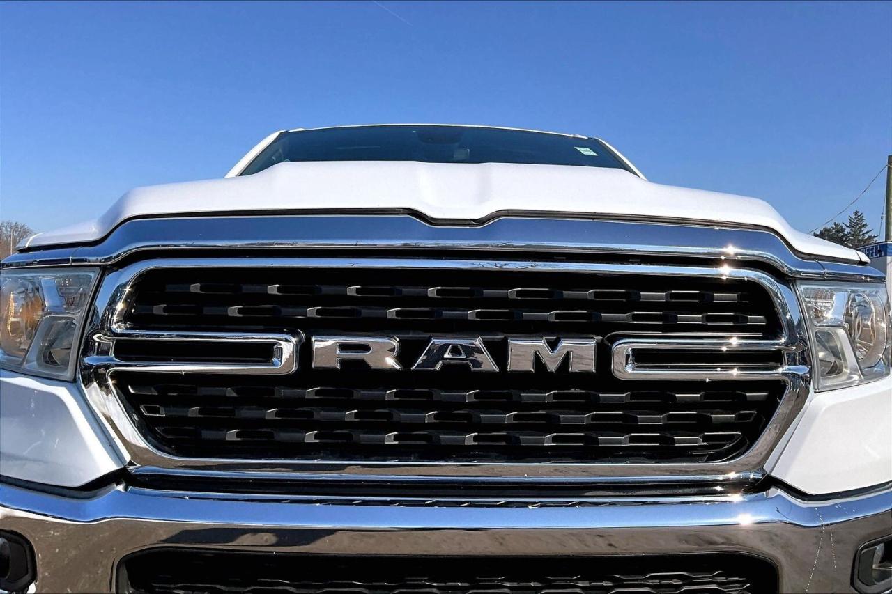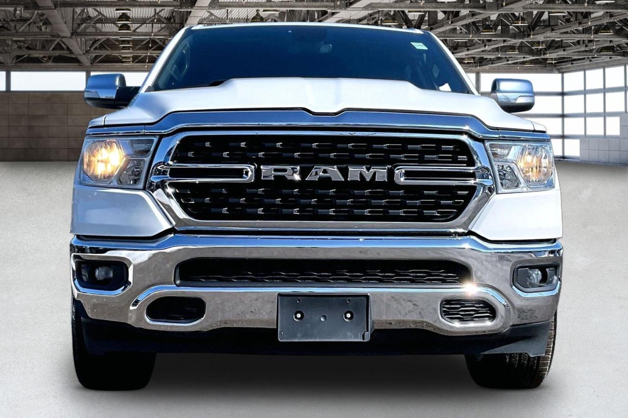 2022 Ram 1500 Big Horn Crew Cab 4X4 | 3.6L V6 w/ eTorque | Bright White | Cloth front Bucket Seats | Uconnect 8.4" Touchscreen Display w/ Navigation | Alpine Premium Audio System | Wireless Apple CarPlay & Android Auto | Rear Power Sliding Window | Dual-zone Automatic Climate Control | Mopar All-weather Floor Mats | Class IV Hitch Receiver | 3.55 Rear Axle Ratio | Trailer Brake Control | Anti-spin Differential Rear Axle | Spray-in Bed Liner