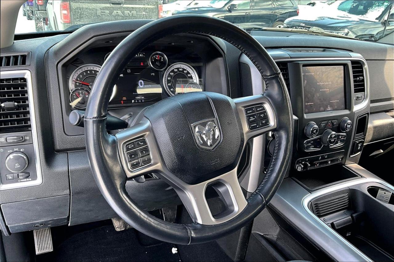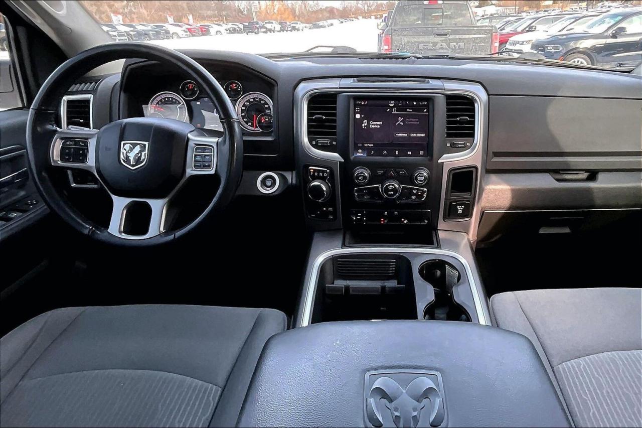 Roomy and comfortable for long days, this 2022 Ram 1500 SLT Crew Cab starts you off with premium cloth bucket seats that heat up quickly, a heated steering wheel, remote start for warm winter departures, and remote proximity entry so you just step in and go. Uconnect on the 8.4 inch touchscreen pairs with Apple CarPlay and Android Auto to keep maps, calls, and music clear and distraction free. Outside, Hydro Blue Pearl looks sharp over a practical 6 foot 4 bed, and real hardware delivers results, with Mopar tubular side steps for easy entry, a spray in liner and hard tri fold tonneau to protect the box, trailer tow mirrors, a Class IV hitch, trailer brake control, a 3.92 rear axle, an anti spin differential, 4x4 traction, and a long range 121 litre tank backed by strong 5.7L V8 power. With Clean Carfax history, this SLT is a tow ready, great looking truck that makes work and weekends easier.