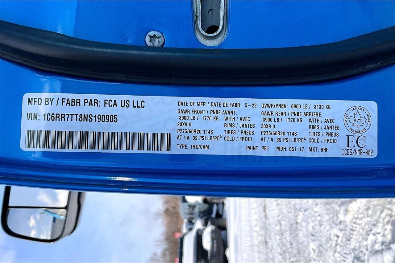 2022 Ram 1500 SLT Crew Cab 4X4 | 5.7L V8 | Hydro Blue Pearl | 6'4" Bed | SLT Plus Decor Group | Premium Cloth front Bucket Seats | Uconnect 8.4" Touchscreen Display | Apple CarPlay & Android Auto | Heated Seats | Heated Steering Wheel | Remote Start | Remote Proximity Keyless Entry | 3.92 Rear Axle Ratio | Class IV Hitch Receiver | Trailer Brake Control | Anti-spin Differential Rear Axle | Trailer Tow Mirrors | Spray-in Bed Liner | Hard Tri-fold Tonneau Cover | Mopar Tubular Side steps | 121L Fuel Tank
