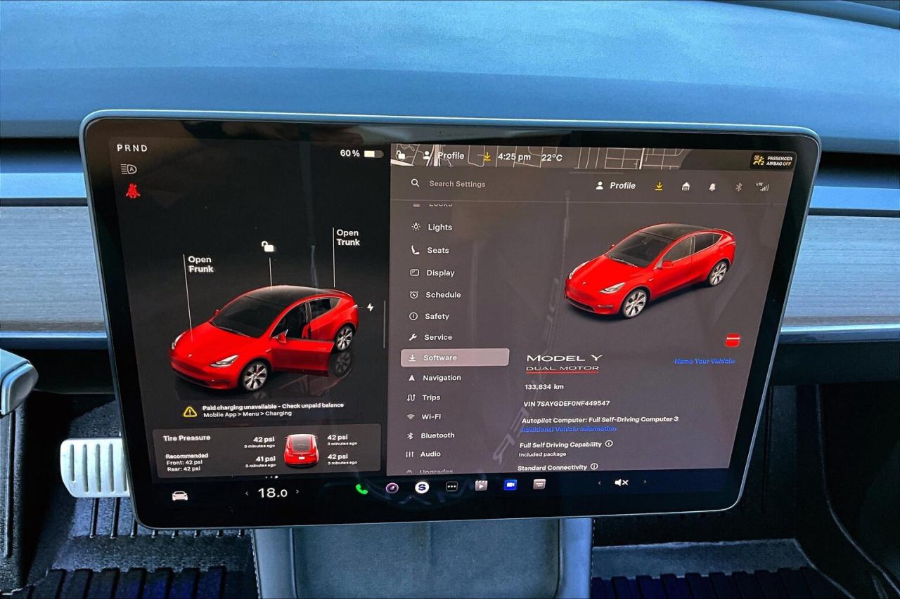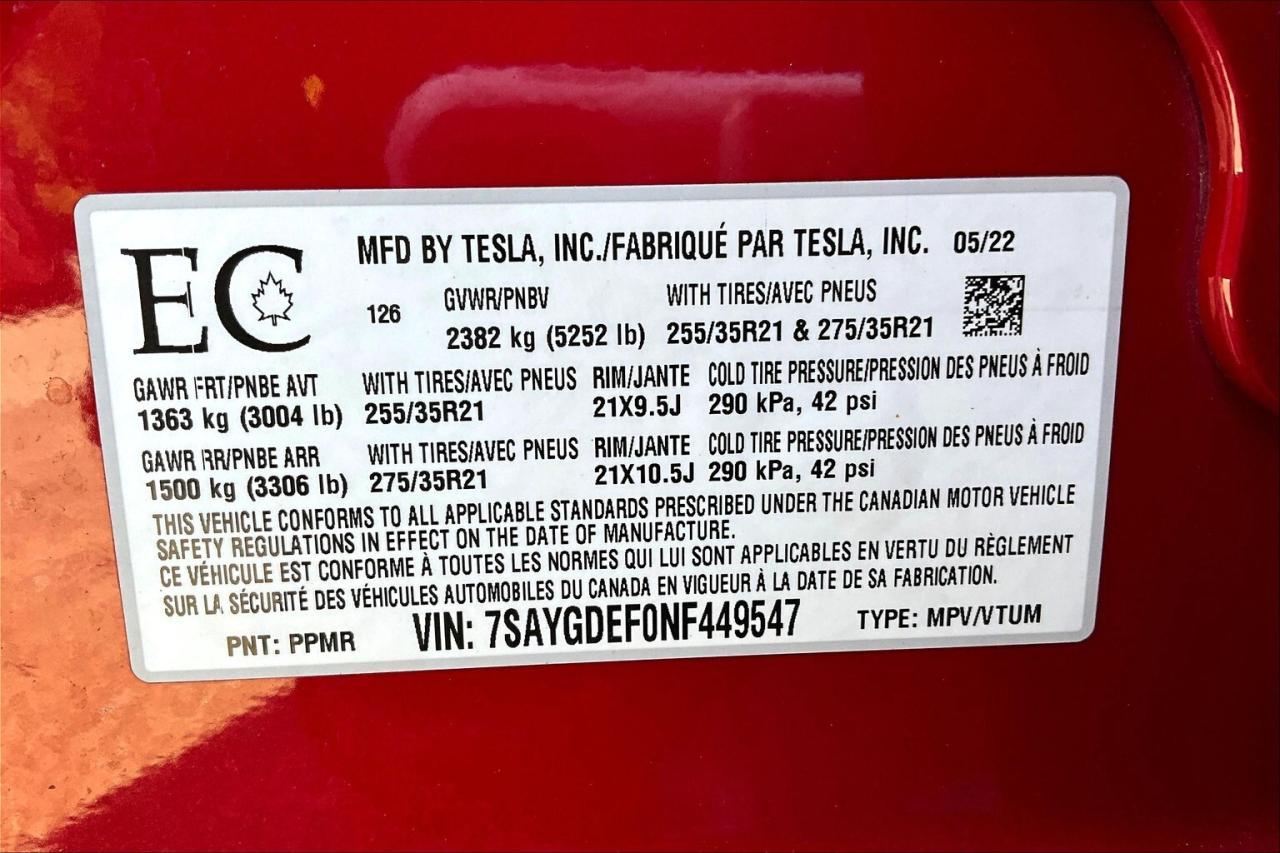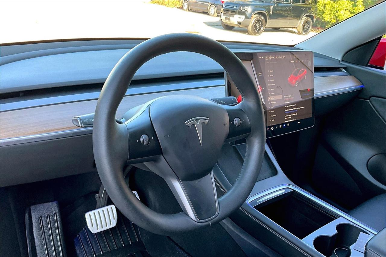 Offering thrilling electric performance and cutting-edge technology, this 2022 Tesla Model Y Performance AWD in striking Red Multi-Coat is the perfect blend of speed, efficiency, and innovation. With Full Self-Driving included for life (no subscription required), it delivers an advanced autonomous driving experience that adds real long-term value. Inside, heated leather seats, a heated steering wheel, heated second-row seats, and even heated wipers ensure all-season comfort, while the premium audio system and built-in navigation make every drive more enjoyable and connected. The 20-inch sport wheels and sleek, aerodynamic design enhance both looks and handling, and Teslas instant electric torque makes acceleration exhilarating. As a fully electric SUV, it eliminates fuel costs and can save you hundreds of dollars per month while qualifying for green Ontario license plates, giving you HOV lane access even when driving solo. Backed by a Clean Carfax, this Model Y Performance is more than just a vehicle its a high-tech, high-performance SUV that redefines efficiency and driving pleasure.