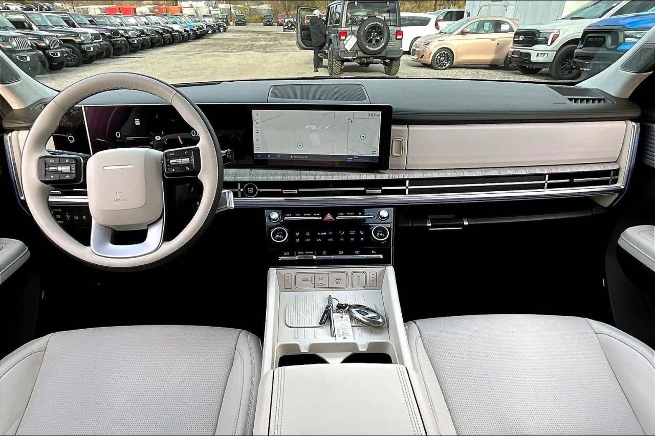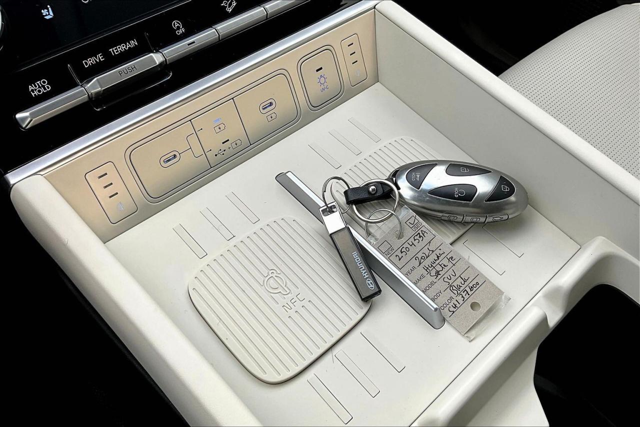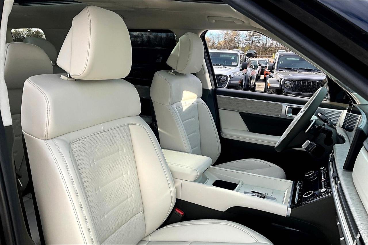 Modern family luxury meets everyday ease in this 2025 Hyundai Santa Fe Ultimate, where heated and ventilated Nappa leather seats, a bright power sunroof, driver memory, dual zone climate control, a heated steering wheel, and 64 colour ambient lighting create a quiet, tailored cabin that turns commutes and road trips into simple pleasures. Tech and confidence come standard with the 12.3 inch navigation display, a 12 speaker Bose audio system for rich clarity, wireless Apple CarPlay and Android Auto, a wireless charging pad that keeps cords away, and advanced safety including adaptive cruise control, lane keep assist, forward collision warning, and blind spot monitoring that smooths traffic and tight parking. Outside, Twilight Black paint and 21 inch gloss black alloys give a bold stance, while AWD and a hands free power liftgate make winter errands and weekends easy. With One Owner Clean Carfax history, this Ultimate blends premium comfort, modern tech, and year round capability into standout value.