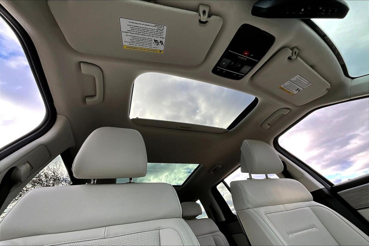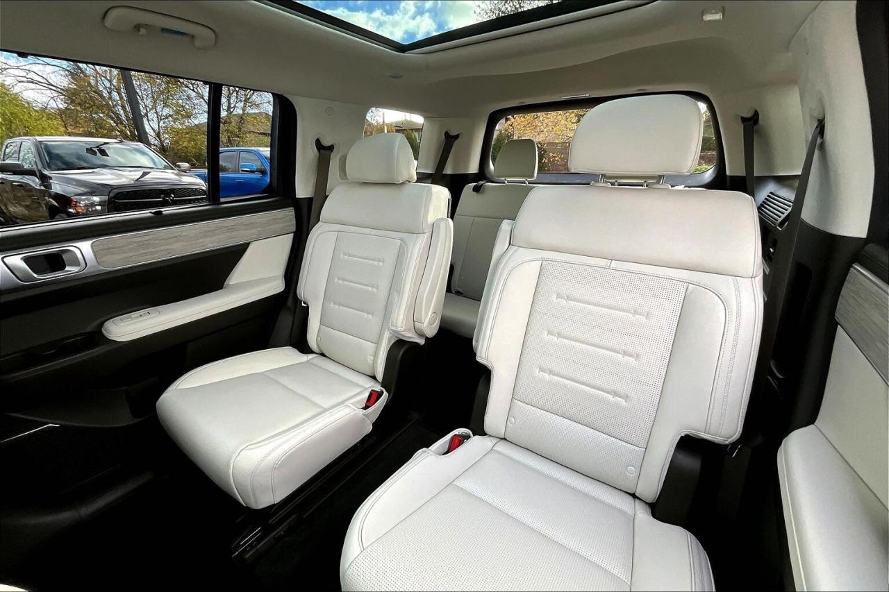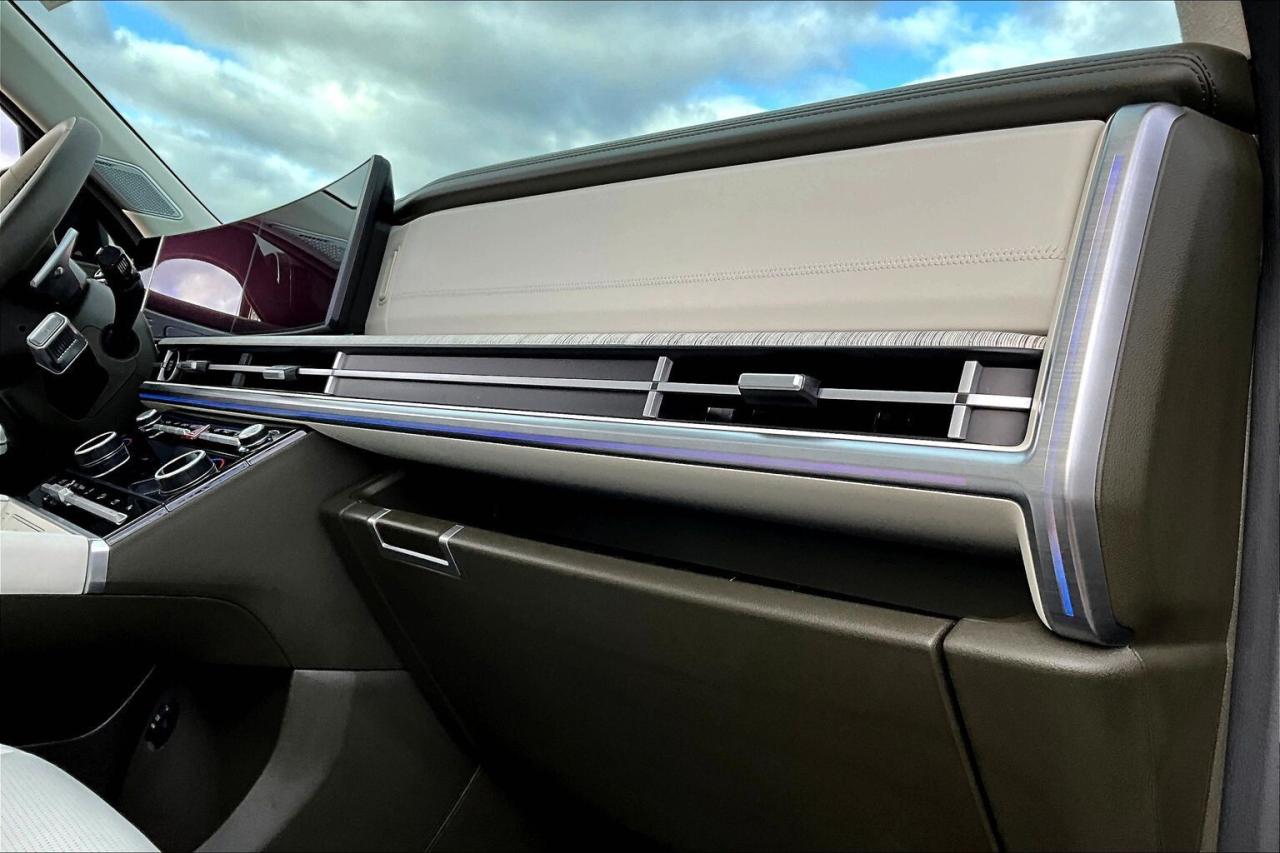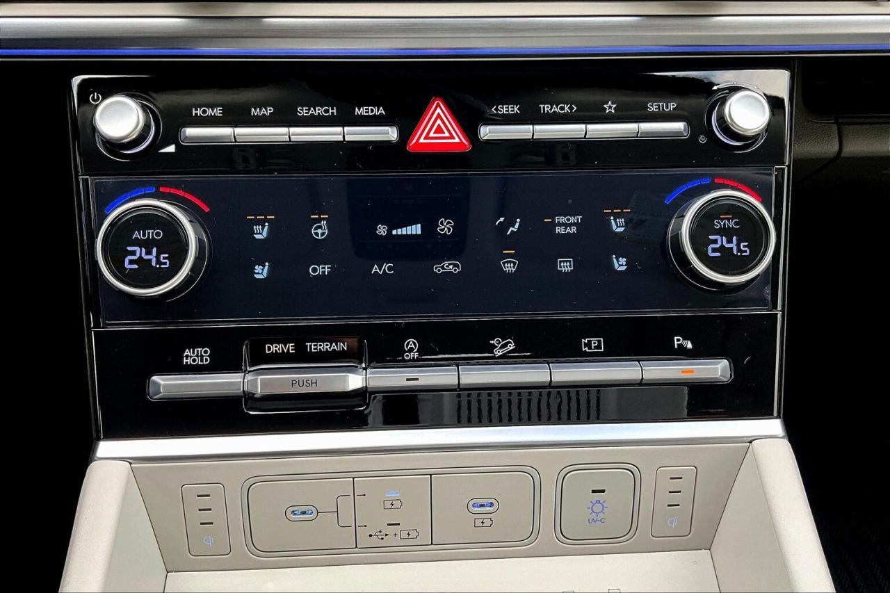 Modern family luxury meets everyday ease in this 2025 Hyundai Santa Fe Ultimate, where heated and ventilated Nappa leather seats, a bright power sunroof, driver memory, dual zone climate control, a heated steering wheel, and 64 colour ambient lighting create a quiet, tailored cabin that turns commutes and road trips into simple pleasures. Tech and confidence come standard with the 12.3 inch navigation display, a 12 speaker Bose audio system for rich clarity, wireless Apple CarPlay and Android Auto, a wireless charging pad that keeps cords away, and advanced safety including adaptive cruise control, lane keep assist, forward collision warning, and blind spot monitoring that smooths traffic and tight parking. Outside, Twilight Black paint and 21 inch gloss black alloys give a bold stance, while AWD and a hands free power liftgate make winter errands and weekends easy. With One Owner Clean Carfax history, this Ultimate blends premium comfort, modern tech, and year round capability into standout value.