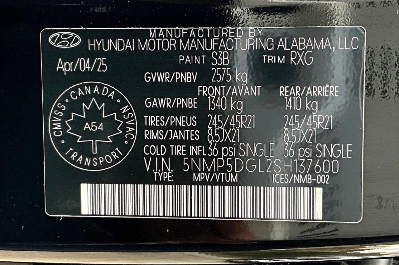 2025 Hyundai Santa Fe Ultimate AWD | 2.5L Turbocharged I-4 Engine | Twilight Black | Heated & Ventilated Nappa Leather Seats | 12.3" Touchscreen Display w/ Navigation | 12-speaker Bose High Performance Audio System | Power Sunroof | Wireless Smartphone Charging Pad | Wireless Apple CarPlay & Android Auto | Heated Steering Wheel | Remote Start | 64-colour Interior Ambient Lighting | Adaptive Cruise Control | Lane Keep Assist | Forward Collision Warning | Blind Spot Monitoring | Driver Memory Seating Position | Dual-zone Automatic Climate Control | 21" Gloss Black Alloy Wheels | Power Liftgate