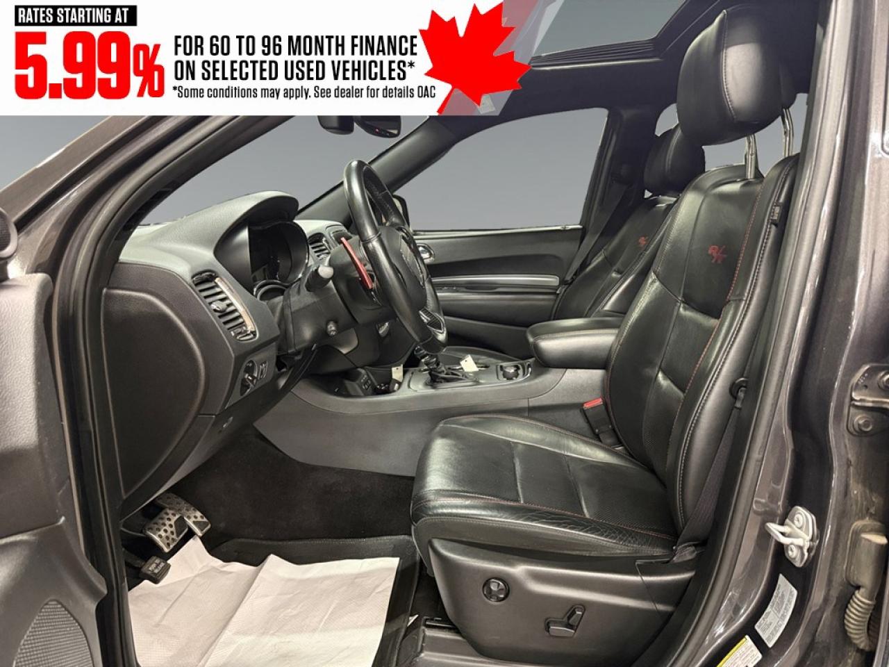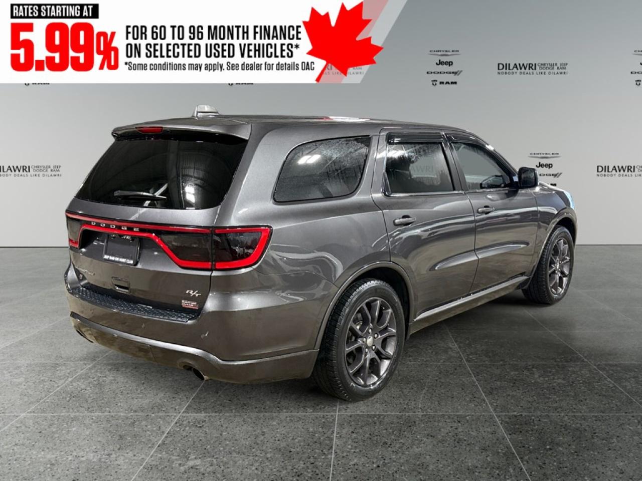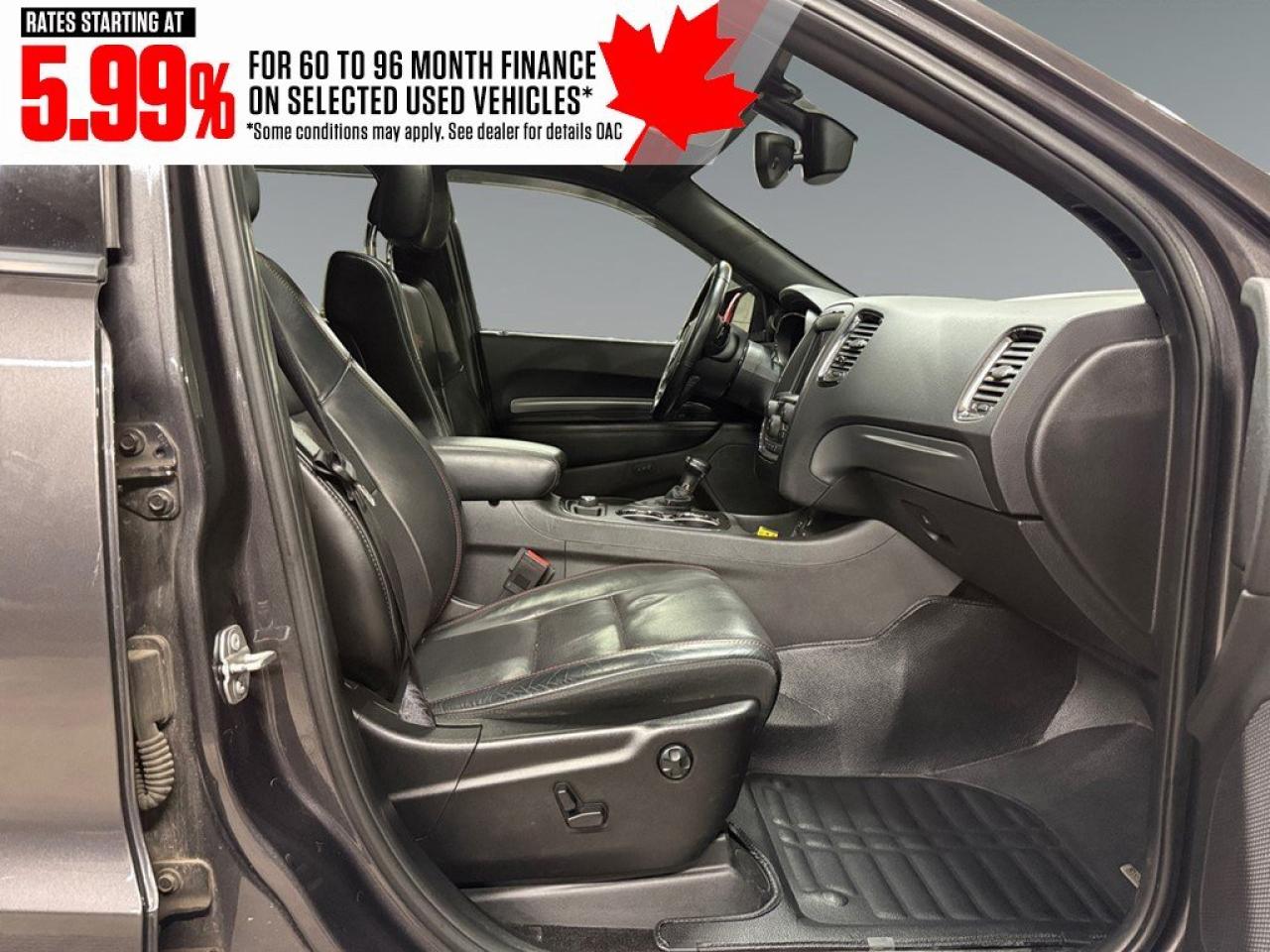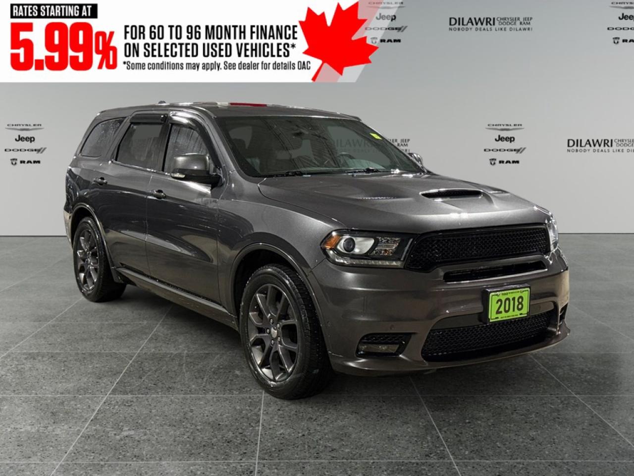 The Dodge Durango R/T AWD in a refined gray finish and driven by an all-wheel-drive system offers exceptional traction and effortless handling. With its robust 5.7-litre 8-cylinder engine delivering 360 horsepower at 5,150 rpm, this SUV is designed to conquer both urban roads and outdoor adventures. The striking exterior features bold lines and alloy wheels that command attention. Inside, the Durango R/T delights with sumptuous leather seats, and both the driver and passengers experience luxury with cooled and heated seats as well as a leather-trimmed steering wheel and gear shifter for a touch of elegance. Equipped with the latest in technology and safety, this SUV includes a high-definition navigation system to keep you on the right track, smart device integration for seamless connectivity, and a comprehensive suite of safety features like a backup camera and parking sensors. Whether its summer or winter, the remote start feature adds convenience, while the heated mirrors and power windows enhance your driving experience. This impressive vehicle is perfect for those who seek a combination of power, luxury, and cutting-edge technology in their everyday drive. If you are someone who values performance just as much as comfort, contact the dealership today to learn more about this exceptional 2018 Dodge Durango R/T AWD. Make it yours and transform every drive into a memorable journey.