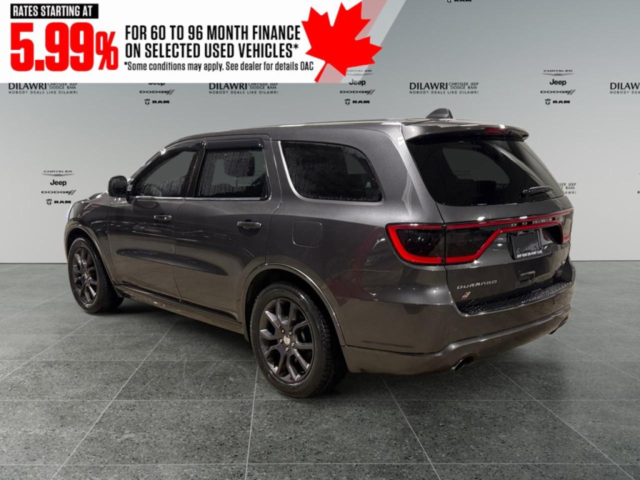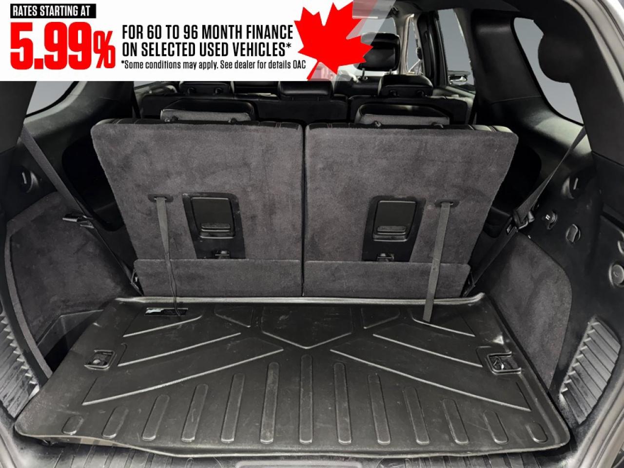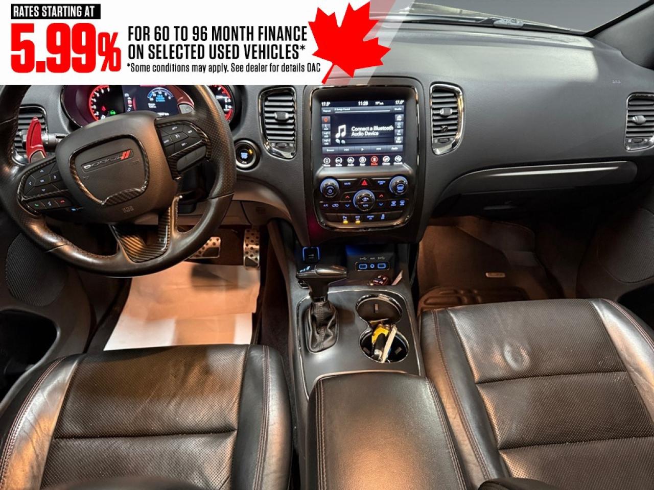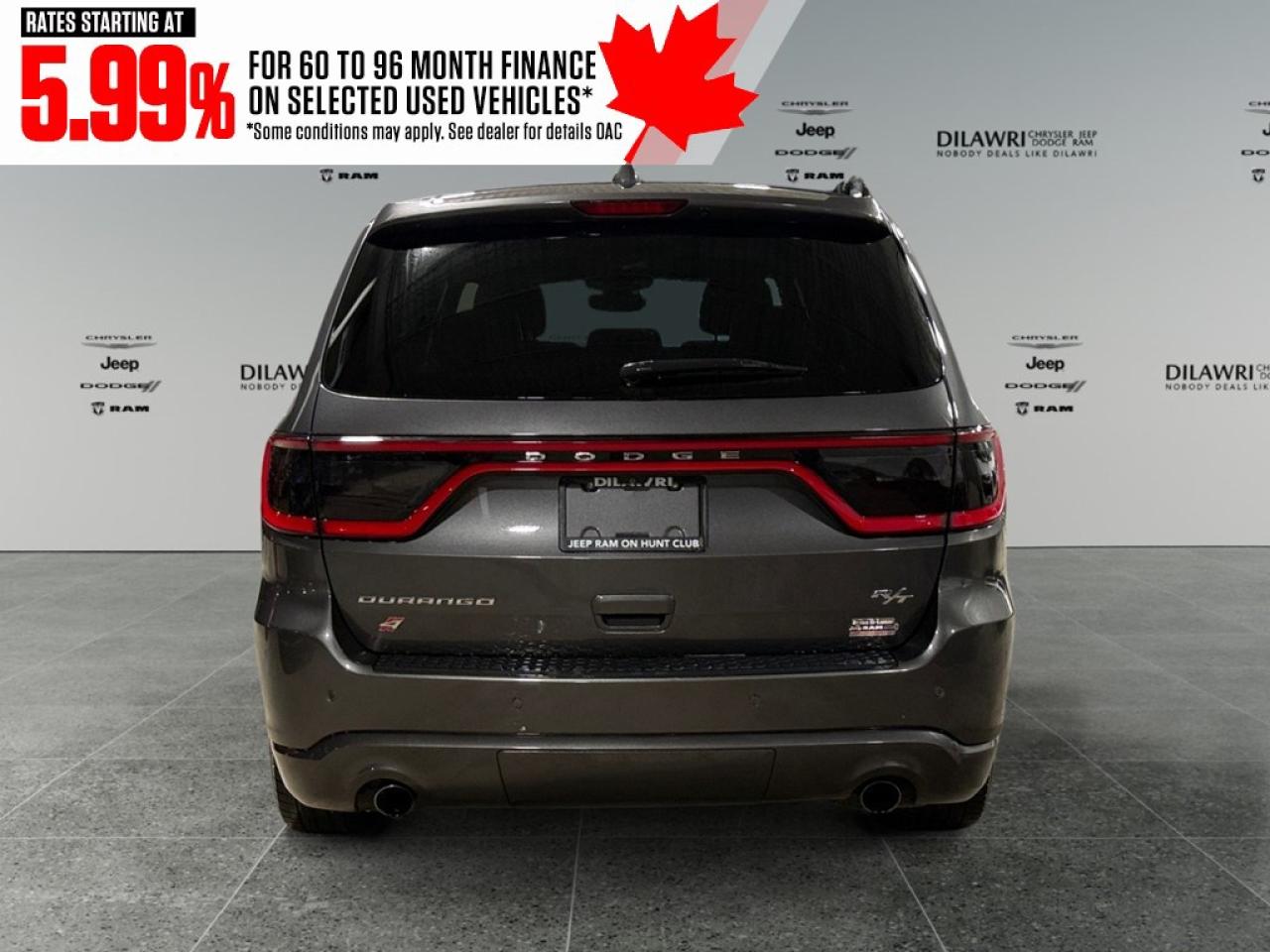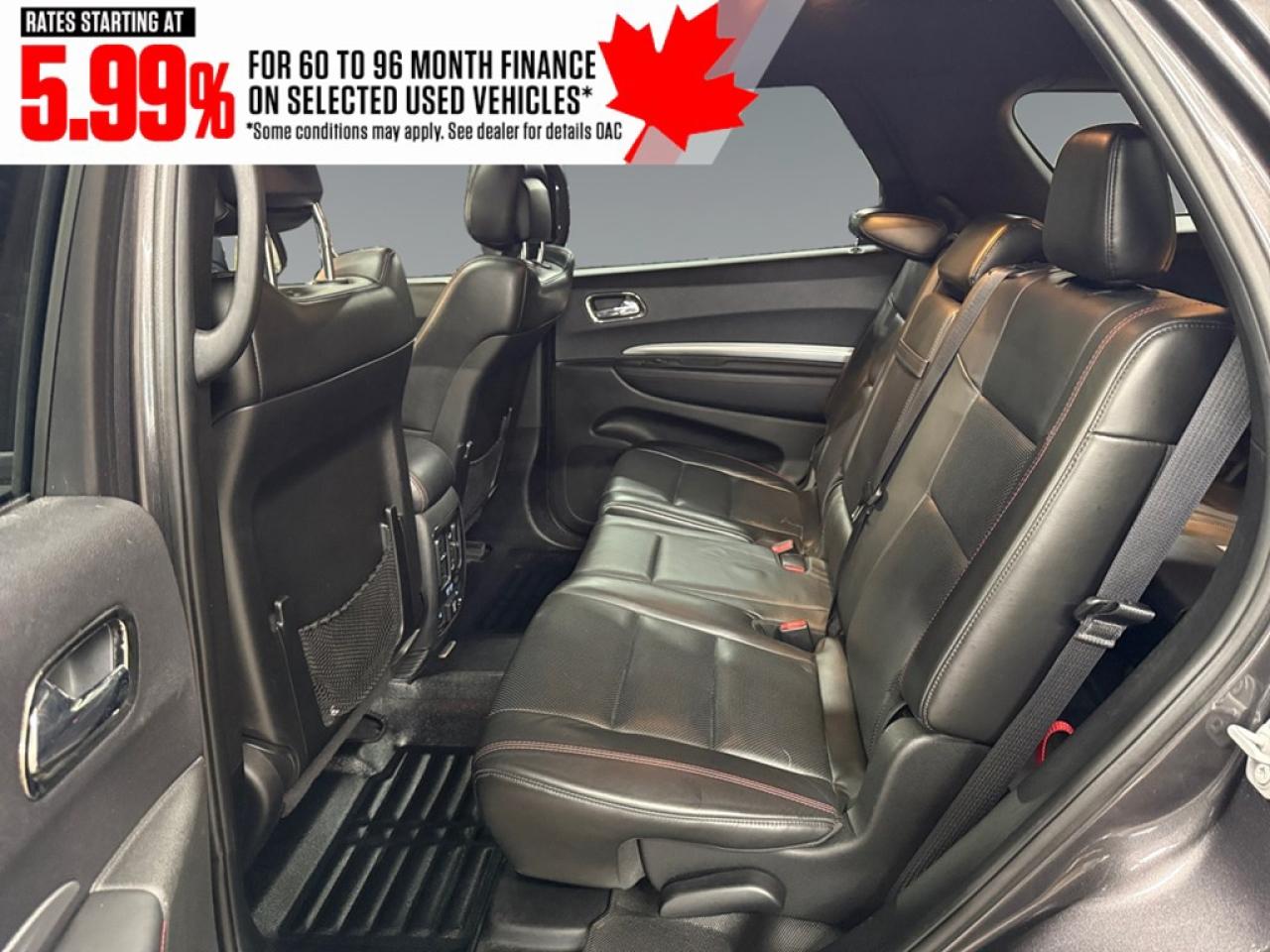 The Dodge Durango R/T AWD in a refined gray finish and driven by an all-wheel-drive system offers exceptional traction and effortless handling. With its robust 5.7-litre 8-cylinder engine delivering 360 horsepower at 5,150 rpm, this SUV is designed to conquer both urban roads and outdoor adventures. The striking exterior features bold lines and alloy wheels that command attention. Inside, the Durango R/T delights with sumptuous leather seats, and both the driver and passengers experience luxury with cooled and heated seats as well as a leather-trimmed steering wheel and gear shifter for a touch of elegance. Equipped with the latest in technology and safety, this SUV includes a high-definition navigation system to keep you on the right track, smart device integration for seamless connectivity, and a comprehensive suite of safety features like a backup camera and parking sensors. Whether its summer or winter, the remote start feature adds convenience, while the heated mirrors and power windows enhance your driving experience. This impressive vehicle is perfect for those who seek a combination of power, luxury, and cutting-edge technology in their everyday drive. If you are someone who values performance just as much as comfort, contact the dealership today to learn more about this exceptional 2018 Dodge Durango R/T AWD. Make it yours and transform every drive into a memorable journey.
