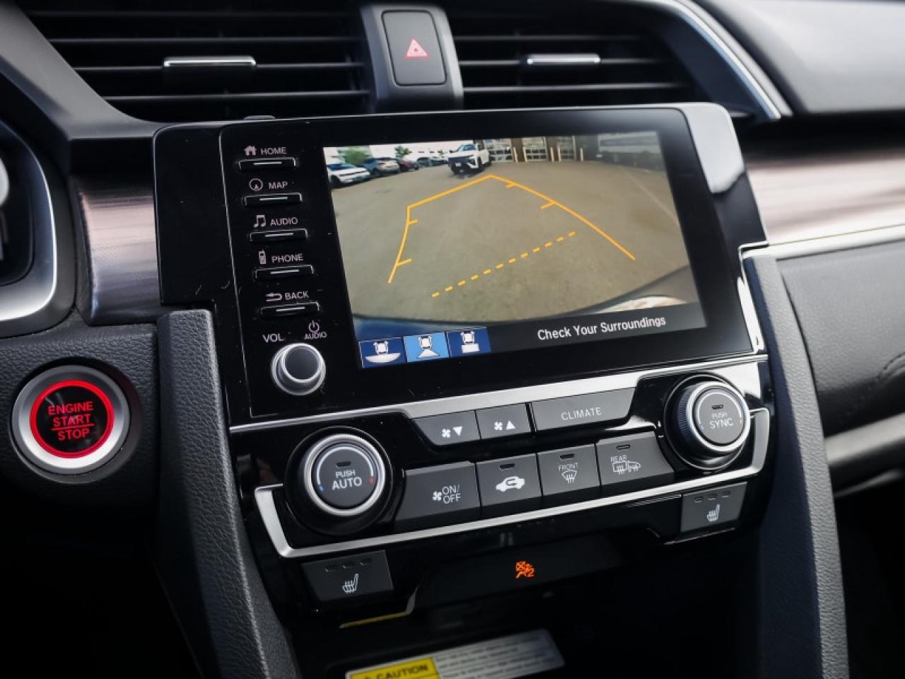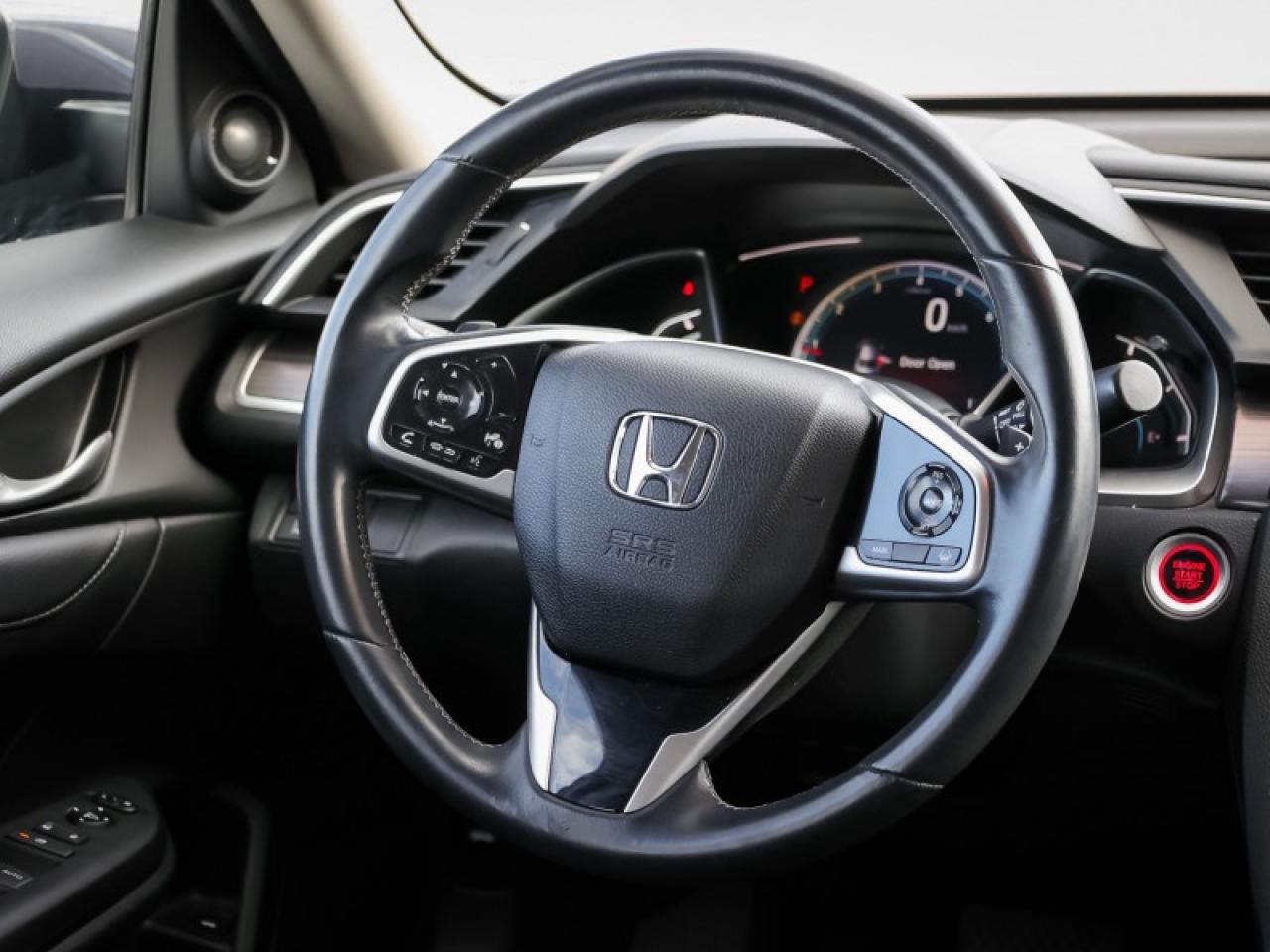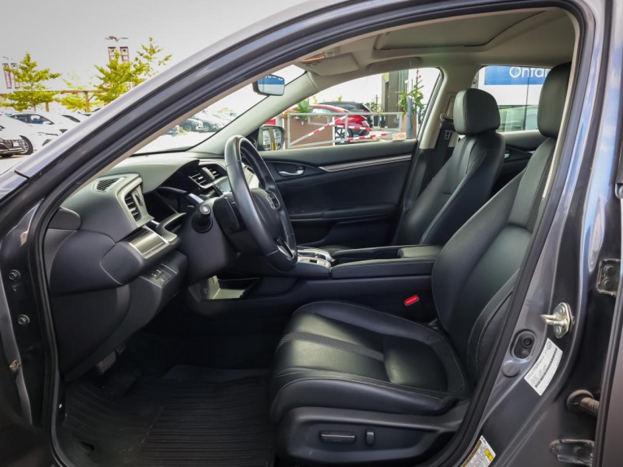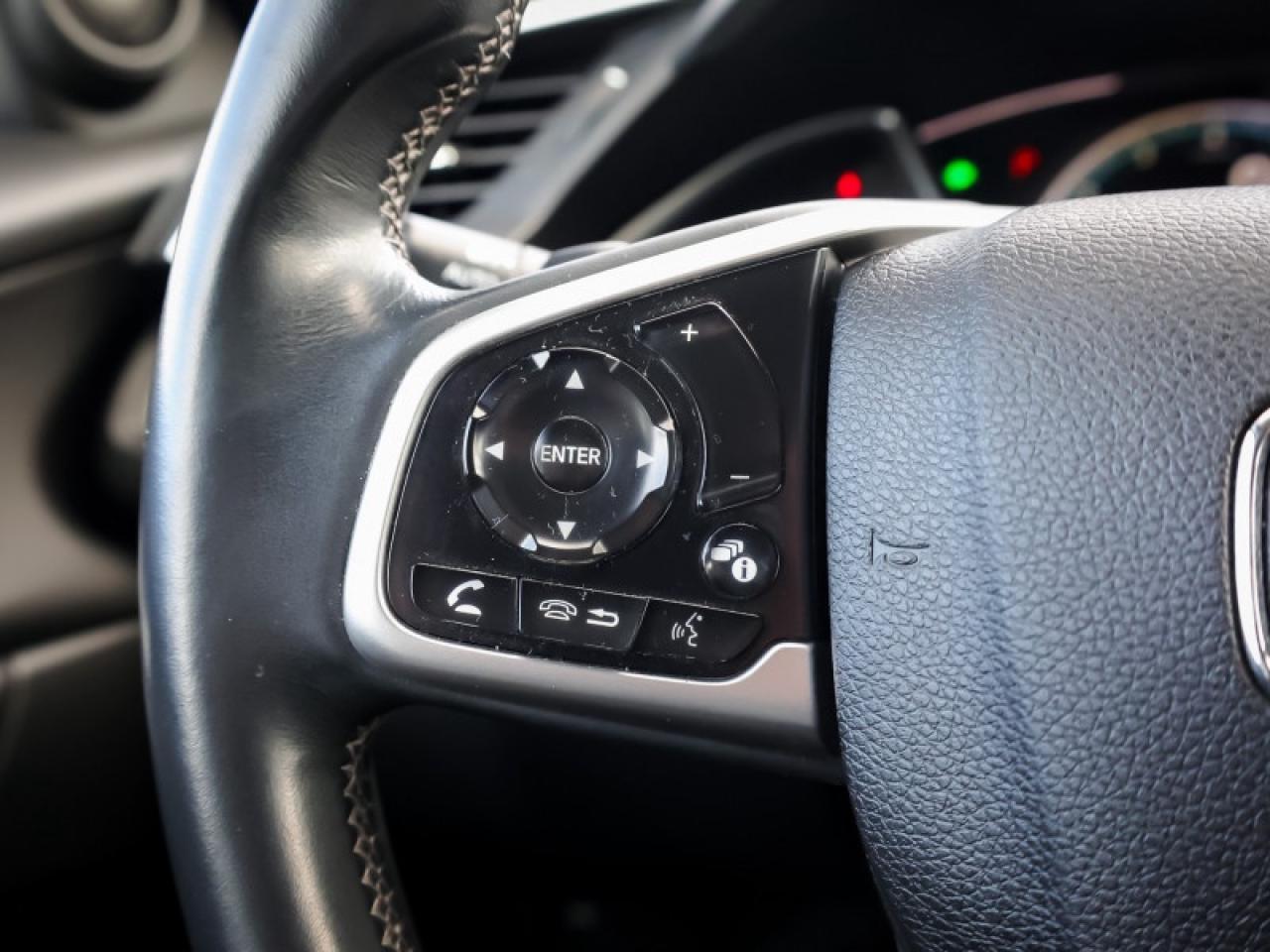 Our Civic Sedan's trim level is Touring. This Touring Civic is the top of luxury with leather trimmed seats, navigation, wireless charging, premium audio, SiriusXM, HR Radio, rain sensing wipers, LED lighting with fog lights, side mirror turn signals, auto dimming rearview mirror, and a HomeLink remote system. Other luxury features include power moonroof, collision mitigation with forward collision warning, lane keep assist with road departure mitigation, adaptive cruise control, blind spot display, heated front seats, remote start, Apple CarPlay, Android Auto, Bluetooth, Siri EyesFree, WiFi tethering, leather steering wheel with cruise and audio controls, multi-angle rearview camera, 7 inch driver information display, and automatic climate control. The exterior has some great style with a proximity key, aluminum trimmed sport pedals, fog lights, paddle shifters, aluminum wheels, independent suspension, heated power side mirrors, and LED taillamps. This vehicle has been upgraded with the following features: Leather Seats, Navigation, Sunroof, Wireless Charging, Premium Audio, Heated Seats, Apple Carplay.