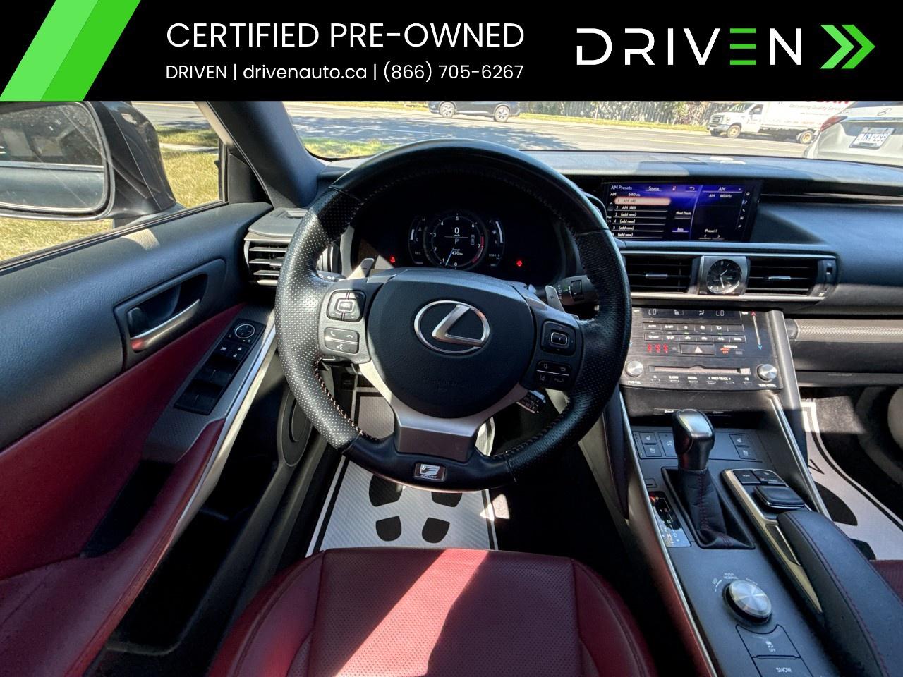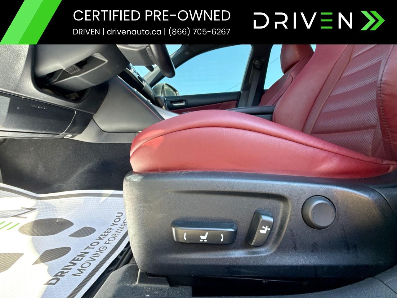 Its sophisticated exterior is enhanced by features like the stylish F SPORT front grille and 18" F SPORT wheels. Step inside to find a sporty red interior with heated and ventilated front sport seats, a testament to both comfort and style. The F SPORT touches extend to a 3-spoke steering wheel and scuff plates, providing an athletic vibe throughout.