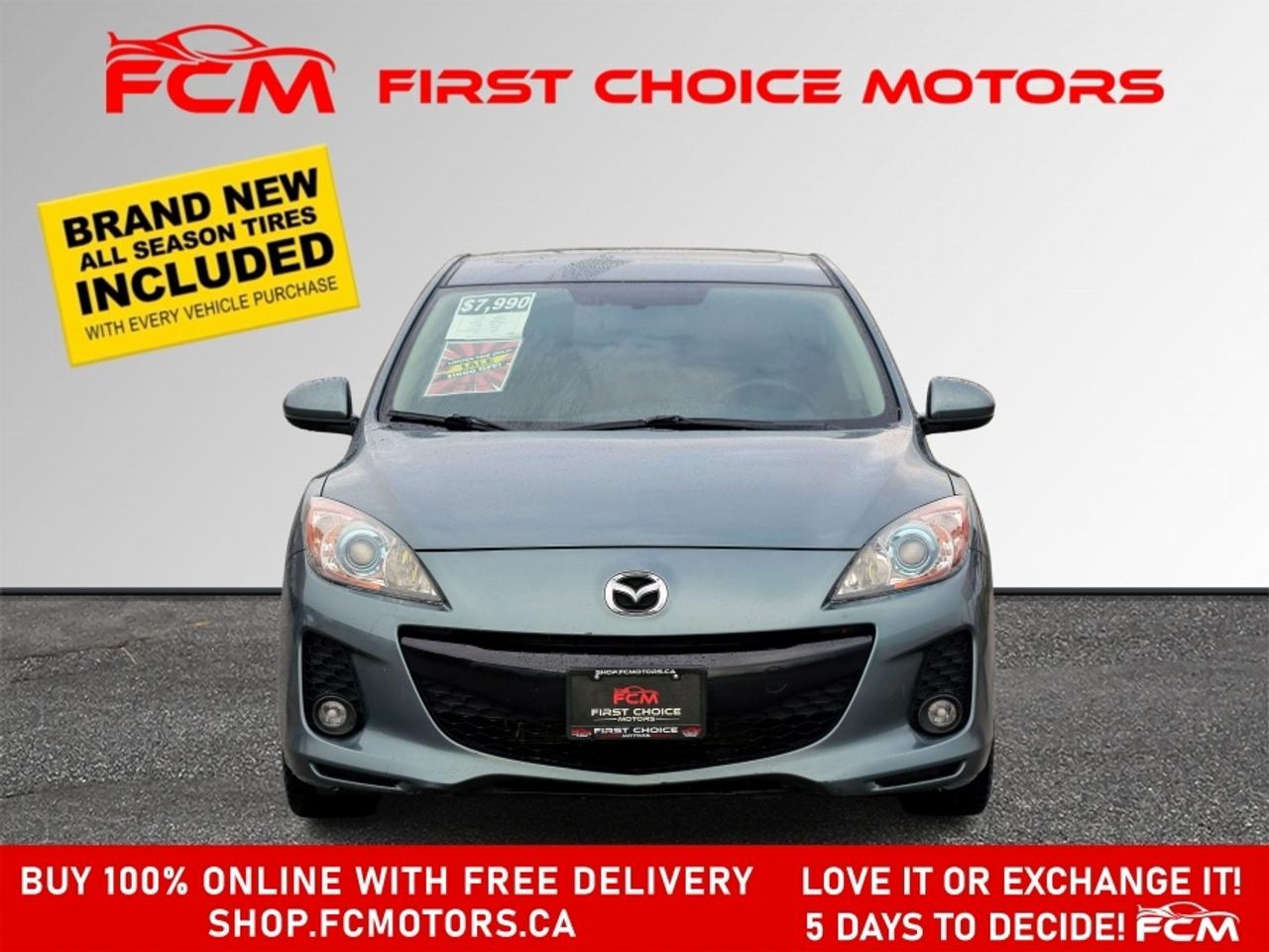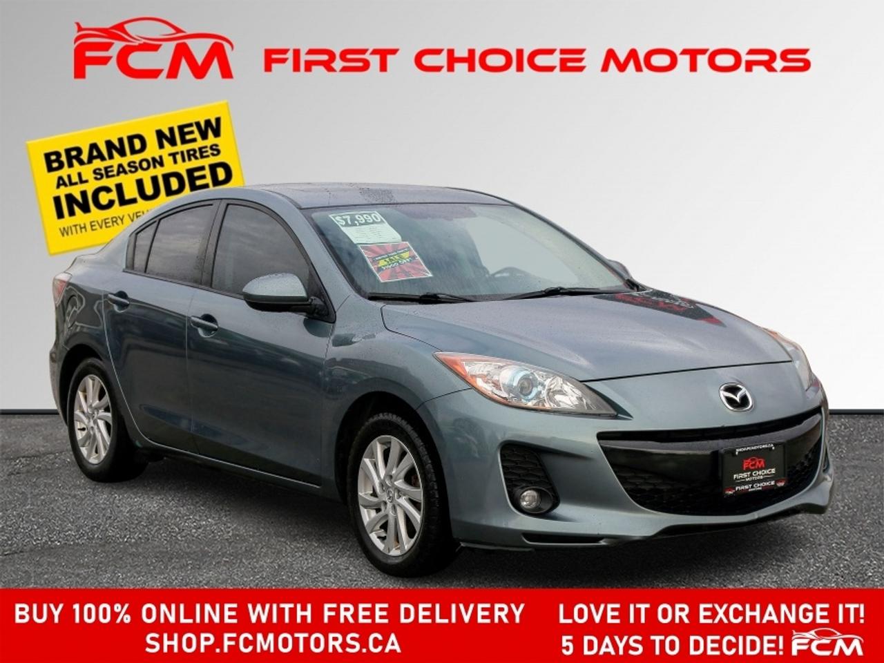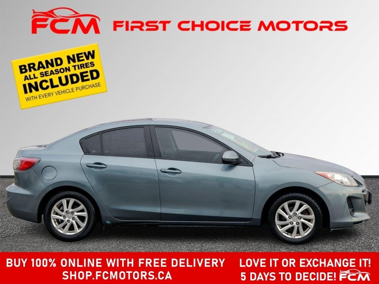 ** ** SPECIAL LIMITED TIME OFFER ** ** PURCHASE ANY VEHICLE THIS WEEK AND RECEIVE 4 BRAND-NEW ALL-SEASON TIRES AT NO ADDITIONAL COST!!! DONT MISS THIS EXCLUSIVE CHANCE TO UPGRADE YOUR RIDE AND STAY PREPARED FOR ANY WEATHER!!! EXCITING NEWS FROM FIRST CHOICE MOTORS! Our brand-new online showroom is now open to the public, bringing the ultimate car shopping experience right to your fingertips! Enjoy a 100% online car shopping experience, with over 500 certified vehicles in stock, comprehensive protection plans, and thousands of new auto parts & accessories available! Plus, for a limited time, we're offering FREE deliveries across Ontario on all vehicle purchases! Don't miss outvisit Shop.fcmotors.ca to find and upgrade your perfect vehicle today! Welcome to First Choice Motors, the largest car dealership in Toronto of pre-owned cars, SUVs, and vans priced between $5000-$15,000. With an impressive inventory of over 300 vehicles in stock, we are dedicated to providing our customers with a vast selection of affordable and reliable options. We're thrilled to offer a used 2012 Mazda MAZDA3 GS Skyactiv, blue color with 219,000km (STK#9713) This vehicle was $7990 NOW ON SALE FOR $6990. It is equipped with the following features: - Automatic Transmission - Leather Seats - Sunroof - Heated seats - Bluetooth - Alloy wheels - Power windows - Power locks - Power mirrors - Air Conditioning At First Choice Motors, we believe in providing quality vehicles that our customers can depend on. All our vehicles come with a 36-day guarantee on all safety related items. We also offer additional warranty options up to 5 years for our customers who want extra peace of mind. Furthermore, all our vehicles are sold fully certified with brand new brakes rotors and pads, a fresh oil change, and brand new set of all-season tires installed & balanced. You can be confident that this car is in excellent condition and ready to hit the road. At First Choice Motors, we believe that everyone deserves a chance to own a reliable and affordable vehicle. That's why we offer financing options with low interest rates starting at 7.9% O.A.C. We're proud to approve all customers, including those with bad credit, no credit, students, and even 9 socials. Our finance team is dedicated to finding the best financing option for you and making the car buying process as smooth and stress-free as possible. Our dealership is open 7 days a week to provide you with the best customer service possible. We carry the largest selection of used vehicles for sale under $9990 in all of Ontario. We stock over 300 cars, mostly Hyundai, Chevrolet, Mazda, Honda, Volkswagen, Toyota, Ford, Dodge, Kia, Mitsubishi, Acura, Lexus, and more. With our ongoing sale, you can find your dream car at a price you can afford. Come visit us today and experience why we are the best choice for your next used car purchase! All prices include $22.00 OMVIC Fee. Excludes, license plates, ownership registration and ONTARIO HST (13%) *No Credit Card payments can be accepted for Vehicle Purchases* *No Credit Card payments can be accepted for Vehicle Purchases*