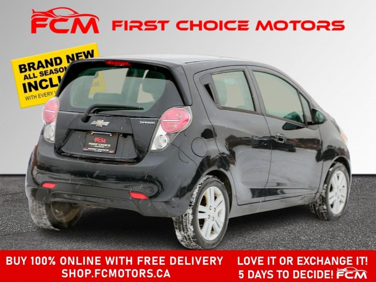 ** ** SPECIAL LIMITED TIME OFFER ** ** PURCHASE ANY VEHICLE THIS WEEK AND RECEIVE 4 BRAND-NEW ALL-SEASON TIRES AT NO ADDITIONAL COST!!! DONT MISS THIS EXCLUSIVE CHANCE TO UPGRADE YOUR RIDE AND STAY PREPARED FOR ANY WEATHER!!! EXCITING NEWS FROM FIRST CHOICE MOTORS! Our brand-new online showroom is now open to the public, bringing the ultimate car shopping experience right to your fingertips! Enjoy a 100% online car shopping experience, with over 500 certified vehicles in stock, comprehensive protection plans, and thousands of new auto parts & accessories available! Plus, for a limited time, we're offering FREE deliveries across Ontario on all vehicle purchases! Don't miss outvisit Shop.fcmotors.ca to find and upgrade your perfect vehicle today! Welcome to First Choice Motors, the largest car dealership in Toronto of pre-owned cars, SUVs, and vans priced between $5000-$15,000. With an impressive inventory of over 300 vehicles in stock, we are dedicated to providing our customers with a vast selection of affordable and reliable options. We're thrilled to offer a used 2014 Chevrolet Spark LT, black color with 263,000km (STK#9359) This vehicle was $5490 NOW ON SALE FOR $4990. It is equipped with the following features: - Automatic Transmission - Hatchback - Bluetooth - Reverse camera - Alloy wheels - Power windows - Power locks - Power mirrors - Air Conditioning At First Choice Motors, we believe in providing quality vehicles that our customers can depend on. All our vehicles come with a 36-day FULL COVERAGE warranty. We also offer additional warranty options up to 5 years for our customers who want extra peace of mind. Furthermore, all our vehicles are sold fully certified with brand new brakes rotors and pads, a fresh oil change, and brand new set of all-season tires installed & balanced. You can be confident that this car is in excellent condition and ready to hit the road. At First Choice Motors, we believe that everyone deserves a chance to own a reliable and affordable vehicle. That's why we offer financing options with low interest rates starting at 7.9% O.A.C. We're proud to approve all customers, including those with bad credit, no credit, students, and even 9 socials. Our finance team is dedicated to finding the best financing option for you and making the car buying process as smooth and stress-free as possible. Our dealership is open 7 days a week to provide you with the best customer service possible. We carry the largest selection of used vehicles for sale under $9990 in all of Ontario. We stock over 300 cars, mostly Hyundai, Chevrolet, Mazda, Honda, Volkswagen, Toyota, Ford, Dodge, Kia, Mitsubishi, Acura, Lexus, and more. With our ongoing sale, you can find your dream car at a price you can afford. Come visit us today and experience why we are the best choice for your next used car purchase! All prices exclude a $22 OMVIC fee, license plates & registration and ONTARIO HST (13%) *No Credit Card payments can be accepted for Vehicle Purchases* *No Credit Card payments can be accepted for Vehicle Purchases*