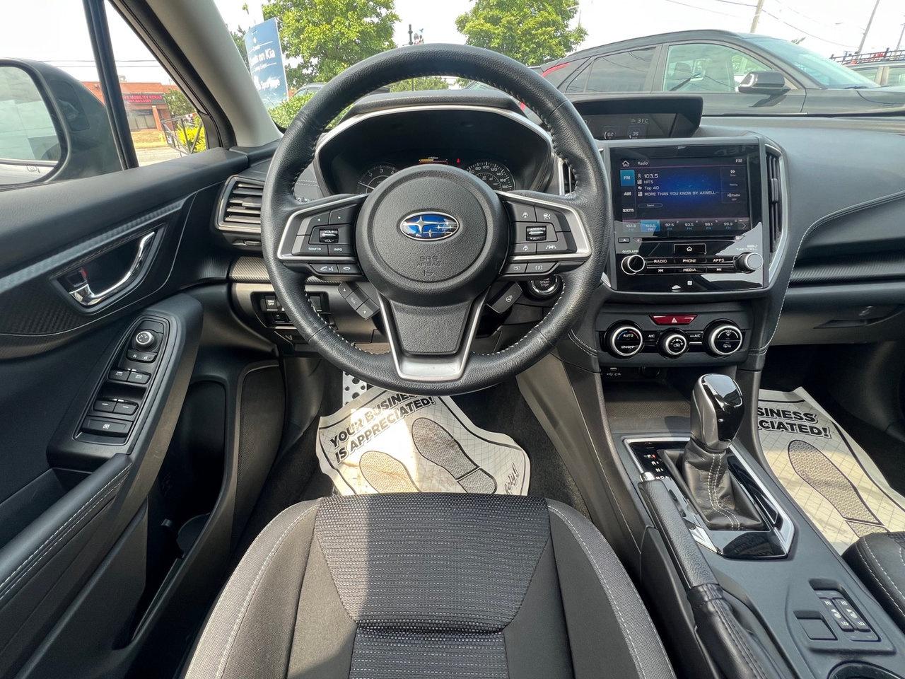 2021 Subaru Impreza Sport Trim Package: 2.0L 4-cylinder engine, automatic transmission, all wheel drive, steering responsive headlights, blind spot detection, rear cross traffic alert, reverse automatic braking, forward collision braking, lane keep assist, adaptive cruise control, premium cloth interior, sunroof, Apple Carplay, Android Auto, bluetooth connectivity, heated steering wheel, heated front seats, LED headlights & fog lights, rearview camera, 17-inch alloy wheels and so much more! Contact our Pre-Owned sales department to find out more and book your appointment today.