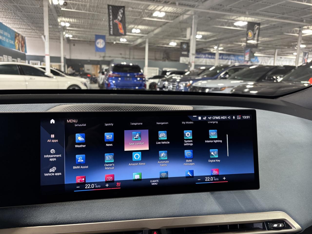 **MONTH-END SPECIAL!** FULLY ELECTRIC, FEATURING : MASSAGE SEATS, ELECTROCHROMIC PANORAMIC ROOF, BMW LASER HEADLIGHTS, MULTICOLOUR AMBIENT LIGHTING, HEIGHT ADJUSTABLE SUSPENSION, DIGITAL GAUGE CLUSTER NAVIGATION DISPLAY, HIGHLY EQUIPPED, VERY CLEAN! FINISHED IN BLUE ON MATCHING TWO TONE BLUE AND GRAY INTERIOR, SUEDE SEATS, HEATED SEATS, REAR HEATED SEATS, NAVIGATION SYSTEM, HIGH TECH 3D BACKUP CAMERA, 360 BACKUP CAMERA, PARKING SENSORS, FORWARD COLLISION MITIGATION, LANE DEPARTURE WARNING, ACTIVE BLIND SPOT DETECTION, SIDE COLLISION WARNING, EXIT WARNING, FATIGUE ALERT, AUTOMATIC PARKING, CROSS TRAFFIC WARNING, AM, FM, SATELLITE, SPOTIFY, APPLECARPLAY, ANDROIDAUTO, BLUETOOTH, PREMIUM ALLOYS, STEERING WHEEL CONTROLS, PREMIUM BOWERS & WILKINS SOUND SYSTEM, POWER OPTIONS, POWER TRUNK, AND MUCH MORE!!!