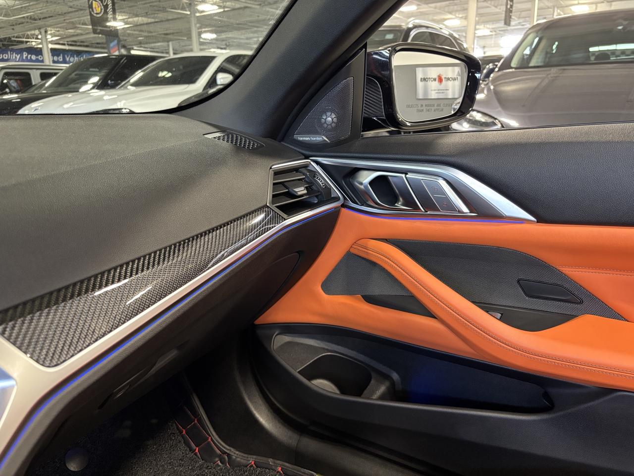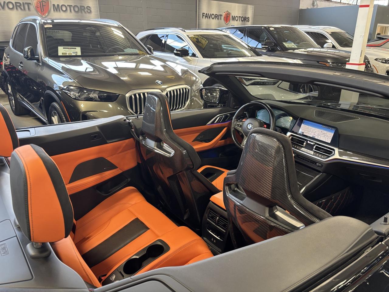 **MONTH-END SPECIAL!** FEATURING : M POWERED, XDRIVE AWD, POWER CONVERTIBLE ROOF, HEADS UP DISPLAY, FRONT BUMPER CARBON, REAR CARBON DIFFUSER, CARBON MIRROR HOUSING, CARBON INTERIOR TRIMS, CARBON PADDLE SHIFTERS, CARBON BUCKET SEATS, BMW LASER HEADLIGHTS, MULTICOLOUR AMBIENT LIGHTING, PREMIUM WEATHERPROOF FLOORMATS, WIRELESS CHARGING TRAY, MULTI DRIVE MODES, M DRIFT ANALYZER, DIGITAL GAUGE CLUSTER NAVIGATION DISPLAY, PERFORMANCE DISPLAYS, HIGHLY LOADED, EXTREMELY CLEAN! FINISHED IN BLACK ON MATCHING ORANGE AND BLACK INTERIOR, STITCHED LEATHER SEATS, HEATED SEATS, HEATED STEERING WHEEL, NAVIGATION SYSTEM, HIGH TECH 3D BACKUP CAMERA, 360 BACKUP CAMERA, PARKING SENSORS, FATIGUE AND FOCUS ALERT, FORWARD COLLISION MITIGATION, LANE DEPARTURE WARNING, ACTIVE BLIND SPOT DETECTION, AUTOMATIC PARKING, CROSS TRAFFIC WARNING, AM, FM, SATELLITE, SPOTIFY, APPLECARPLAY, ANDROIDAUTO, ALEXA, BLUETOOTH, PREMIUM M ALLOYS, M BRAKES, STEERING WHEEL CONTROLS, PREMIUM HARMAN/KARDON SOUND SYSTEM, POWER OPTIONS, AND MUCH MORE!!!