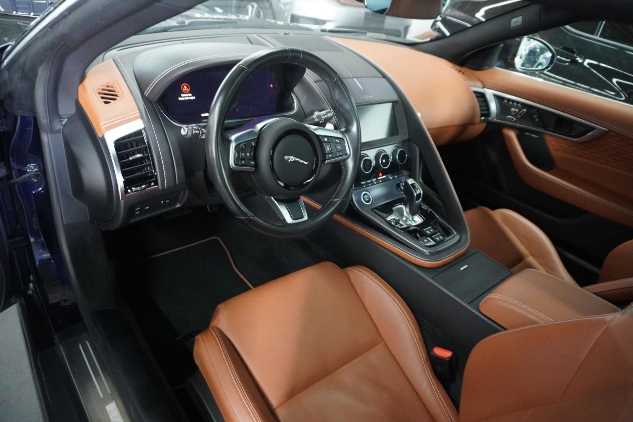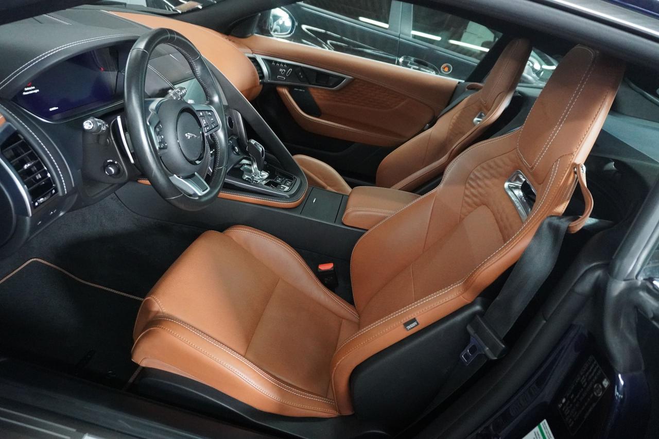 1 OWNER OFF LEASE FINISHED IN BLUE ON SADDLE INTERIOR, EQUIPPED WITH RWD APPLE CARPLAY ANDROID AUTO, HEATED.AIR COOLED SEATS, GLASS ROOF AMBIENT LIGHT, REVERSE CAMERA, BLIND SPOT ASSIST LANE ASSIST, 20' FACTORY WHEELS, PUSH BUTTON START KEY-LESS GO, BLUETOOTH, 5.0L V8 supercharged engine producing 444 horsepower and 428 lb-ft of torque, mated to an 8-speed automatic transmission. Its performance includes a 0-100 km/h acceleration of 4.6 seconds and a maximum speed of 285 km/h. FINANCING AND WARRANTY AVAILABLE, FINANCED PRICE 59999.00 CASH PRICE 62,999.99. TAXES AND LICENSE ARE EXTRA